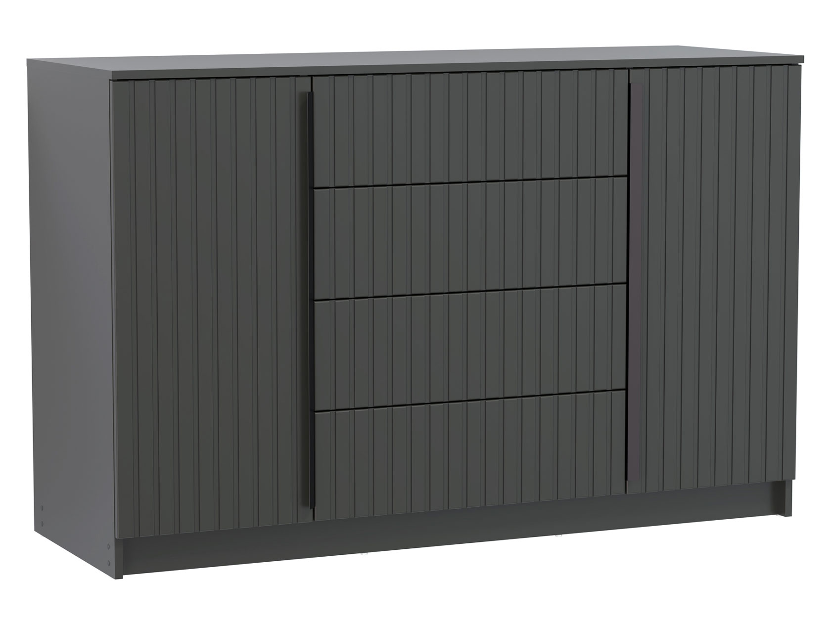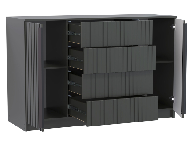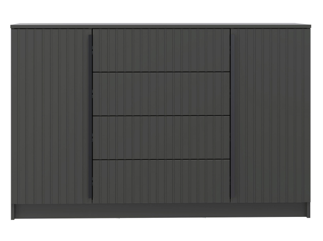 Комод Брандо станет неотъемлемой частью интерьера и организует практичное хранение вещей. В выдвижных ящиках удобно распределить самые разные предметы: от белья до аксессуаров. За распашными фасадами скрыты отделения с полками, где можно расположить объемные коробки, пледы и домашний текстиль. Вертикальная фрезеровка добавляет интерьеру стильные акценты.