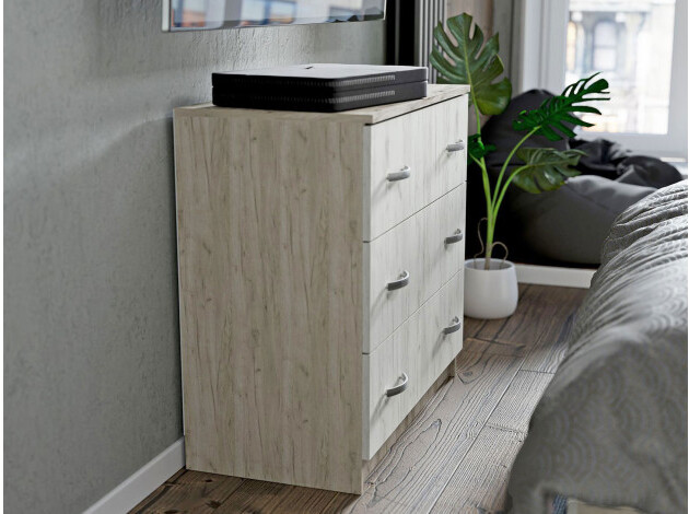 Комод Бриз поможет разместить вещи по своим местам, чтобы в комнате всегда был порядок. Три выдвижных ящика подходят для хранения одежды, детских игрушек и самых разных предметов обихода. Универсальный дизайн и компактные габариты позволяют установить комод практически в любом помещении.