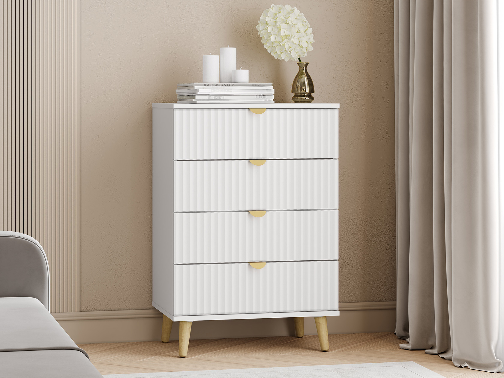 Комод Дакота обеспечит удобное хранение любых вещей. Выдвижные ящики гарантируют быстрый доступ и полный обзор содержимого. Эффектная фурнитура и вертикальная фрезеровка создают стильные акценты в интерьере. Небольшие ножки визуально облегчают силуэт и упрощают уборку напольного покрытия.