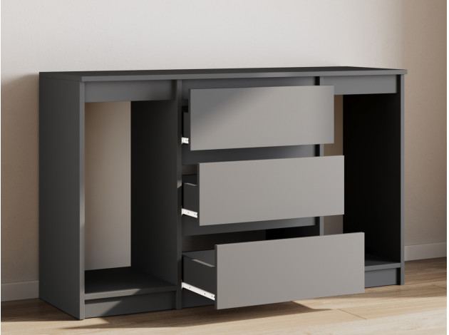 Комод Диксон — функциональный и стильный элемент, который поможет организовать хранение белья, одежды, аксессуаров и других предметов. Благодаря вместительности модель способствует созданию уюта и порядка в комнате. Выдвижные ящики плавно и бесшумно открываются, обеспечивая доступ к содержимому. На поверхности можно поставить комнатные цветы и осветительные приборы.