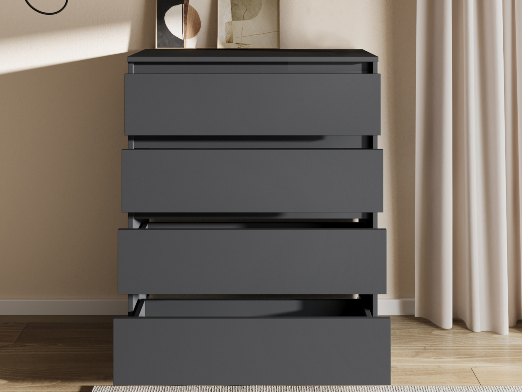 Комод Диксон — изысканное и функциональное решение для оформления интерьера. Строгий дизайн гармонично сочетается с другой мебелью и создает стильный облик комнаты. Просторные ящики с механизмом плавного выдвижения обеспечат удобное хранение постельного белья, одежды и аксессуаров.