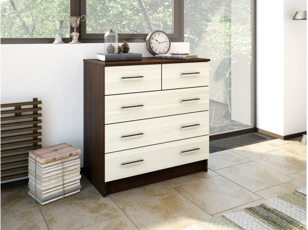 Комод Эко 2 идеально дополнит интерьер гостиной, спальни или прихожей. Сдержанный дизайн и функциональность — главные преимущества модели. Удобные выдвижные ящики обеспечат продуманное хранение одежды, белья и аксессуаров, а также они плавно выдвигаются, позволяя находить нужную вещь даже в спешке. На поверхности можно разместить лампу, предметы декора или рамки с фотографиями, чтобы разнообразить обстановку.