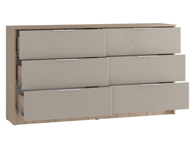 Комод Эмилия оснащен широкими выдвижными ящиками, которые помогут поддерживать порядок в комнате. Сдержанные оттенки и тонкая фрезеровка придают модели особые элегантность и привлекательность. Качественная фурнитура выдерживает большую нагрузку и продлевает срок службы комода.