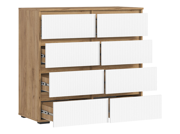 Комод Хелен дополнит современный интерьер, обеспечив место для хранения самых разных вещей. Модель максимально удобна в эксплуатации: ящики легко выдвигаются на всю глубину. Фрезеровка на фасадах выступает небольшим акцентом меблировки.