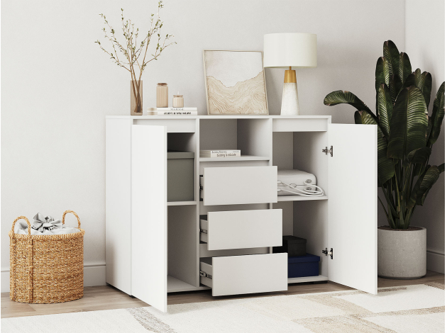 Комод Элли станет неотъемлемой частью интерьера и организует удобное хранение вещей. Лаконичная эстетика, вместительность и качественная фурнитура делают модель практичным приобретением. Комод отлично смотрится в любой комнате, прихожей или офисном пространстве.