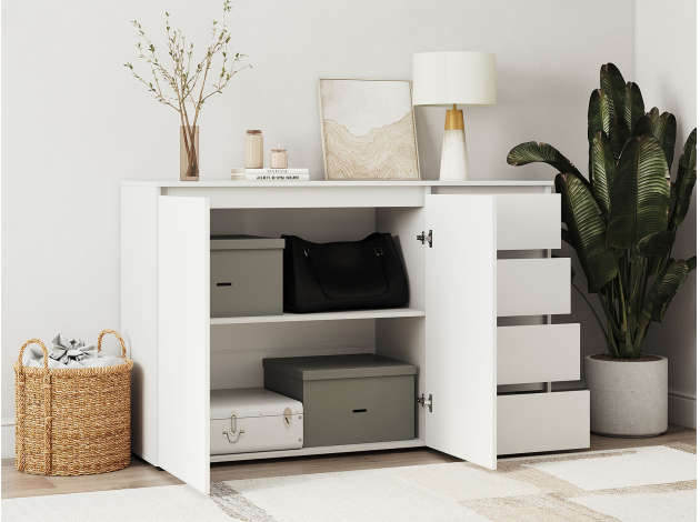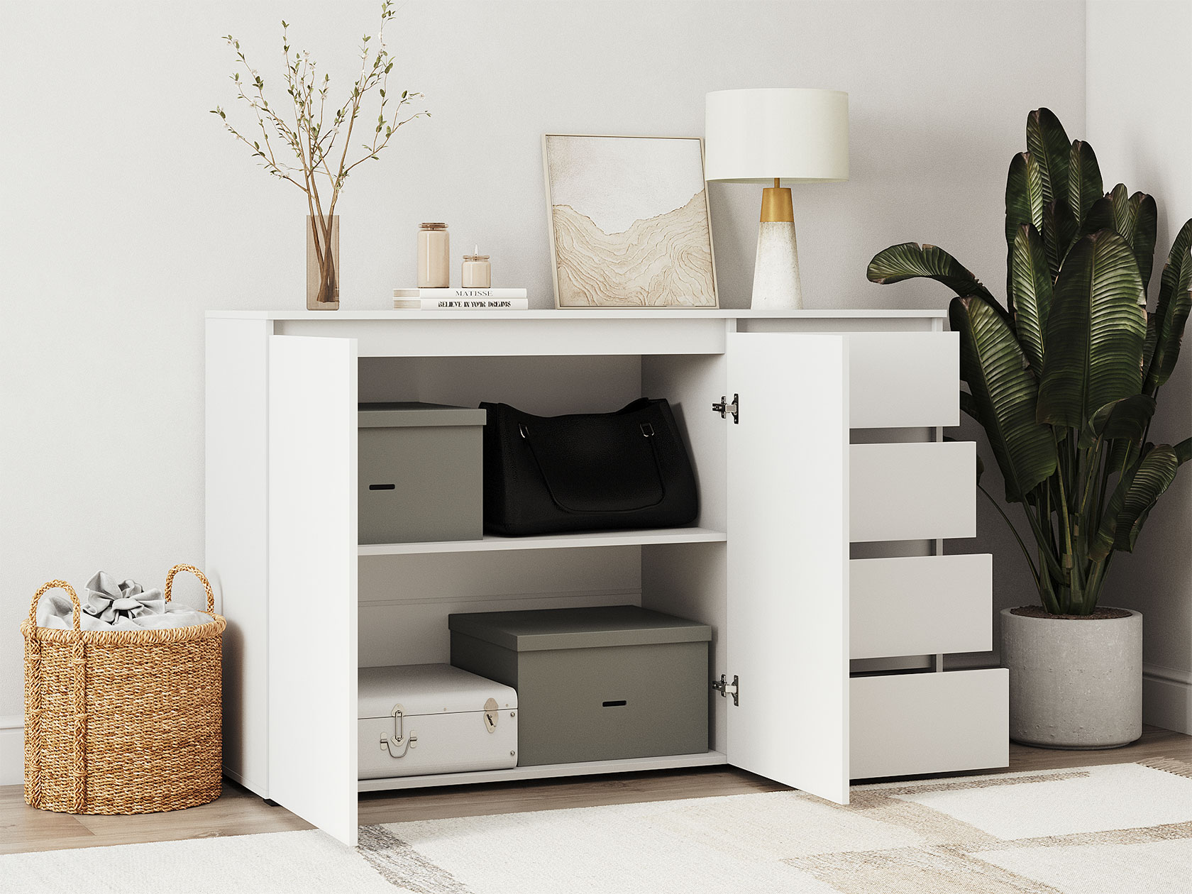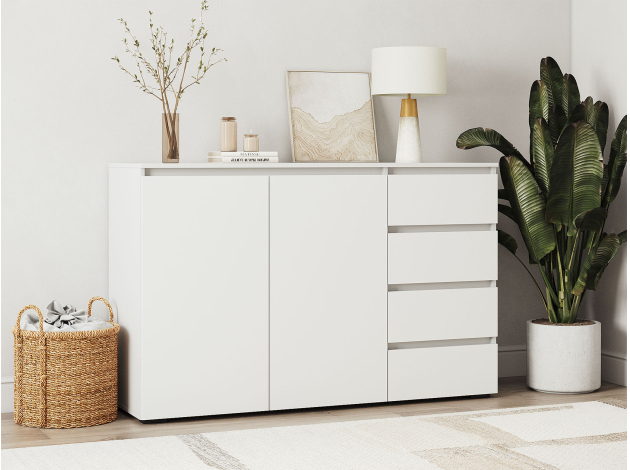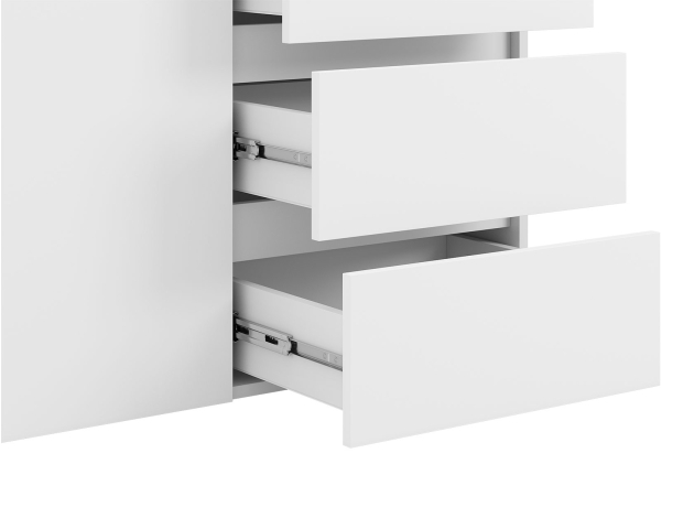 Основательный и удобный комод Элли поможет разместить большое количество вещей: от одежды и обуви до разных мелочей и аксессуаров. Благодаря светлым фасадам без лицевой фурнитуры модель не перегружает интерьер. Дверцы и ящики закрываются плавно и без резких звуков, что делает комод еще комфортнее.