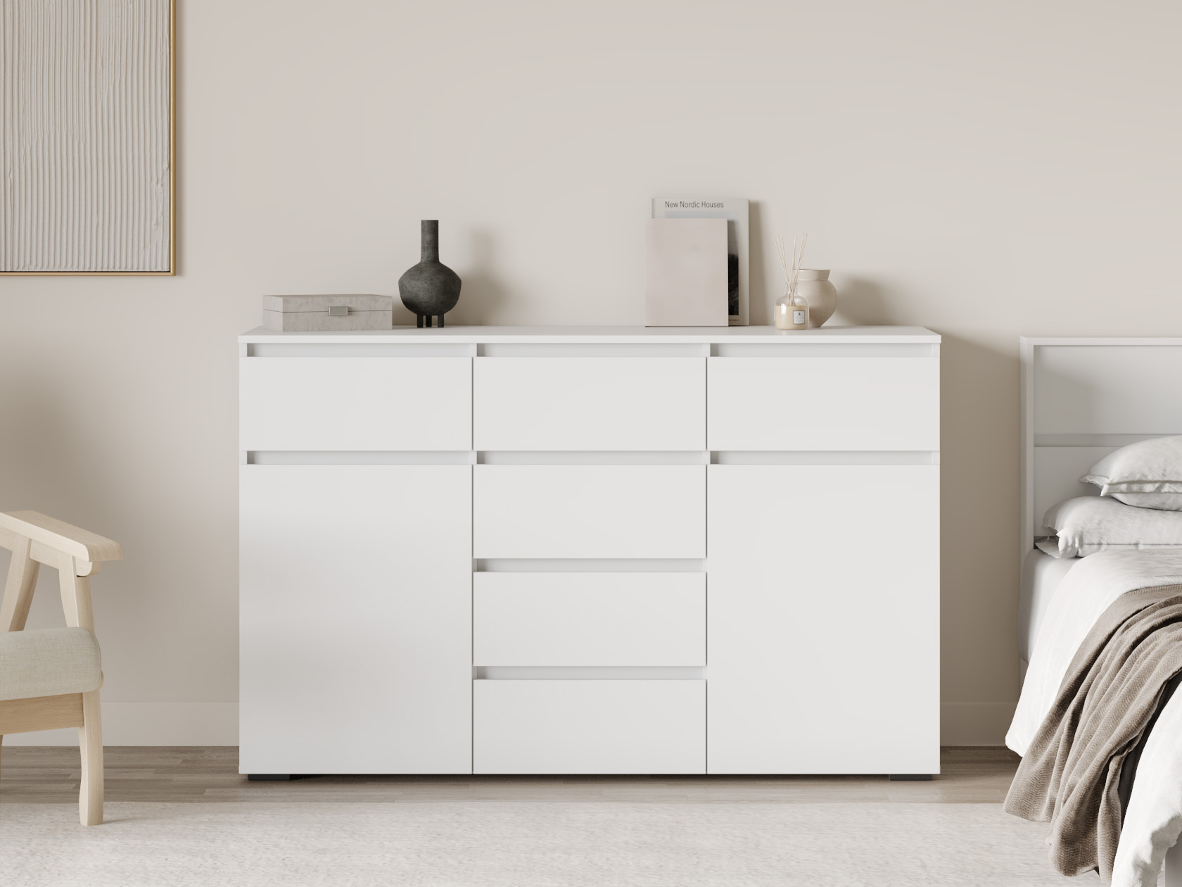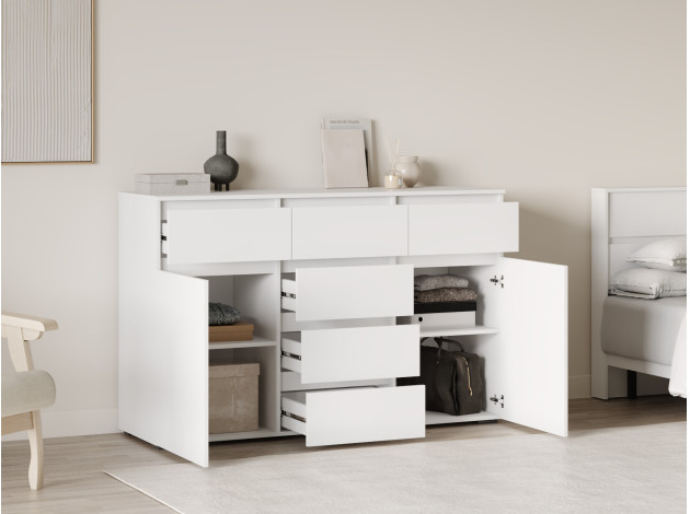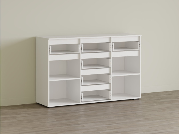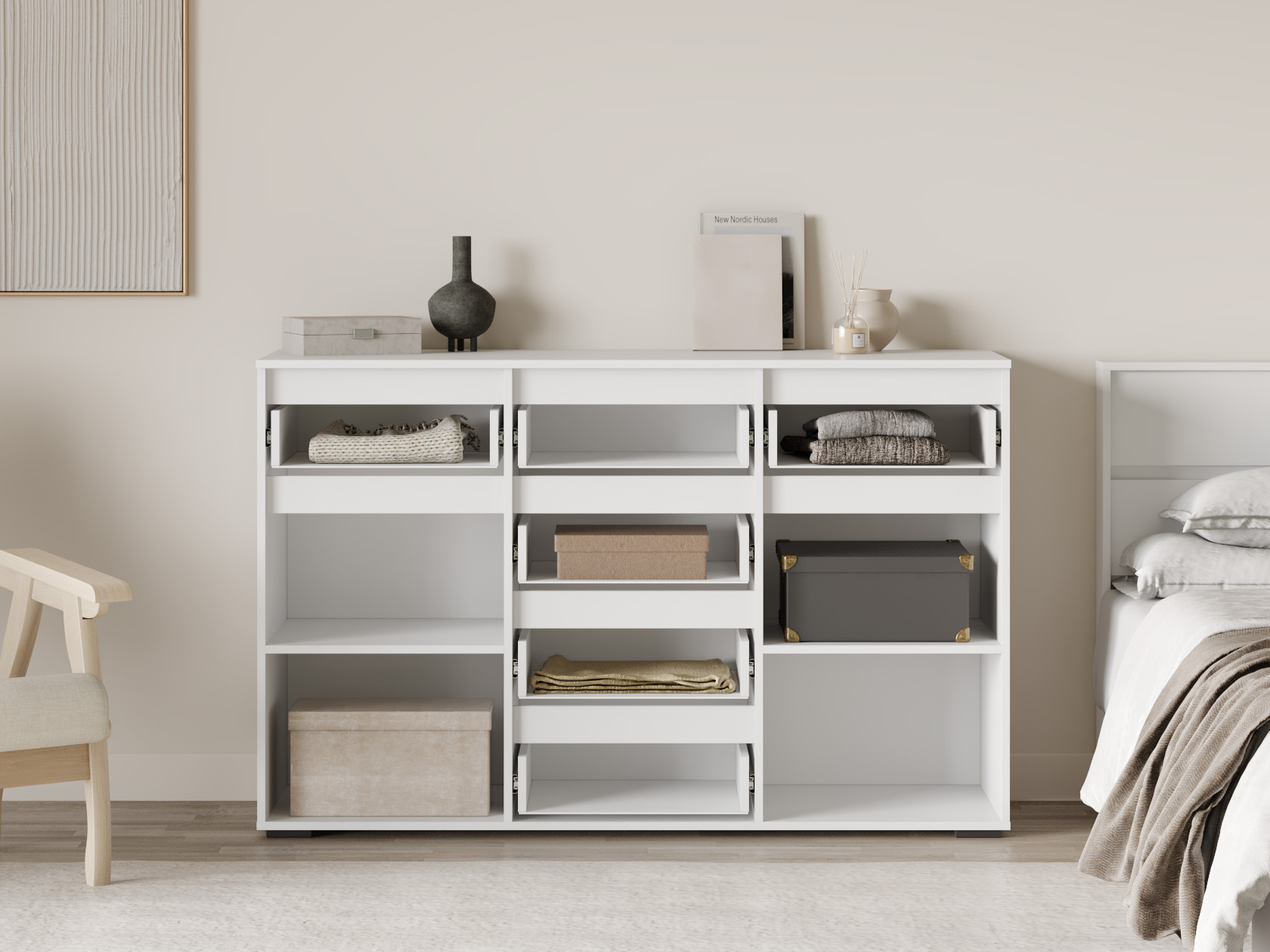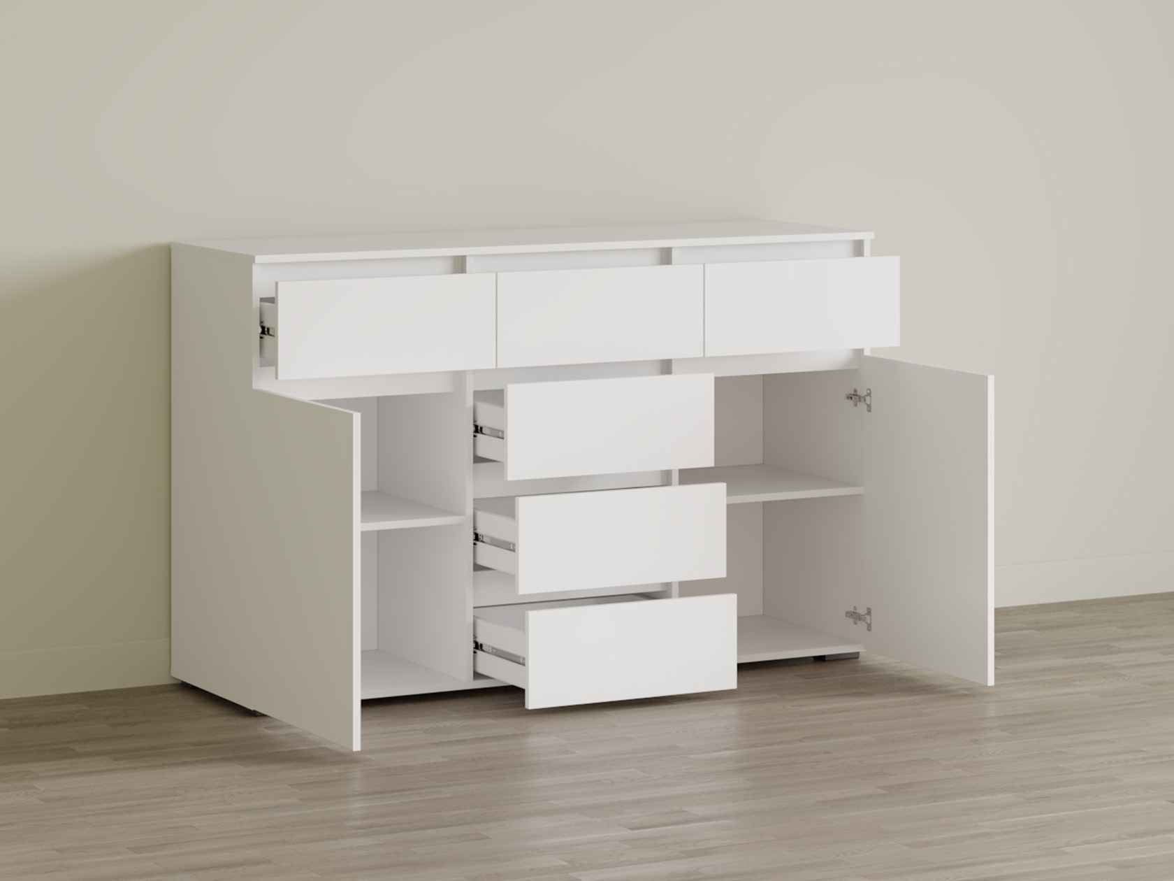 Комод Элли — незаменимый помощник в поддержании порядка. Выдвижные ящики и отделения с полками организуют максимально удобную систему хранения. Подчеркнуто лаконичное оформление удачно сочетается с разными интерьерами. Комод достаточно широкий и вместительный, поэтому подходит для просторных комнат.