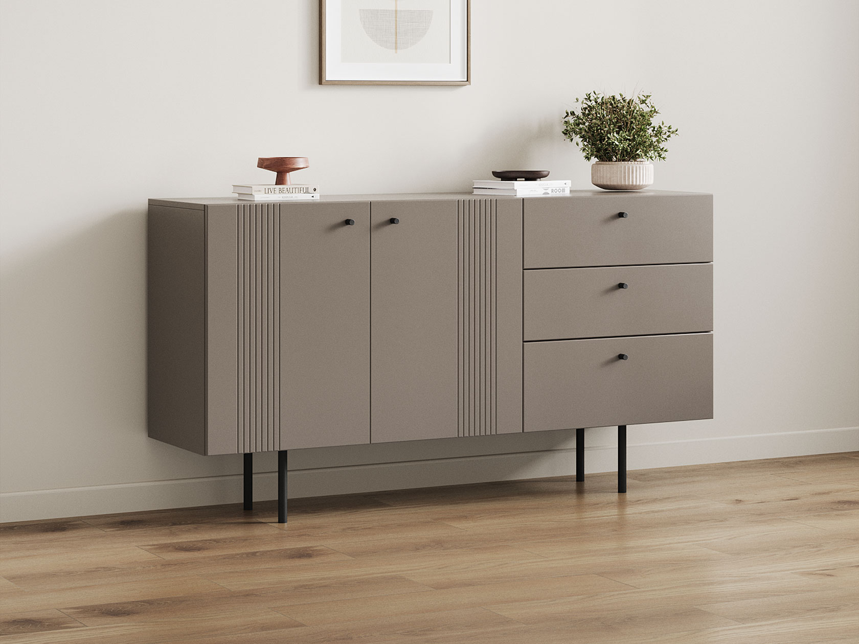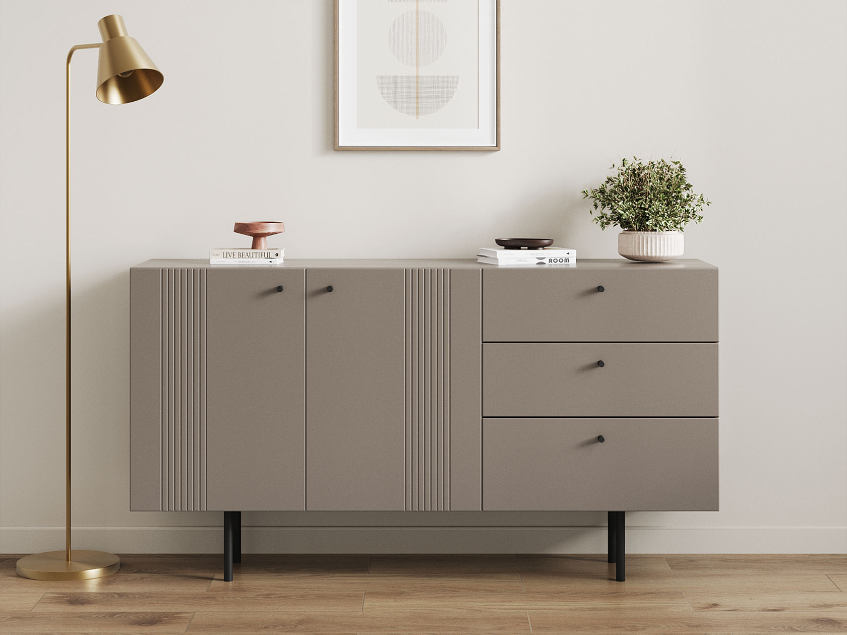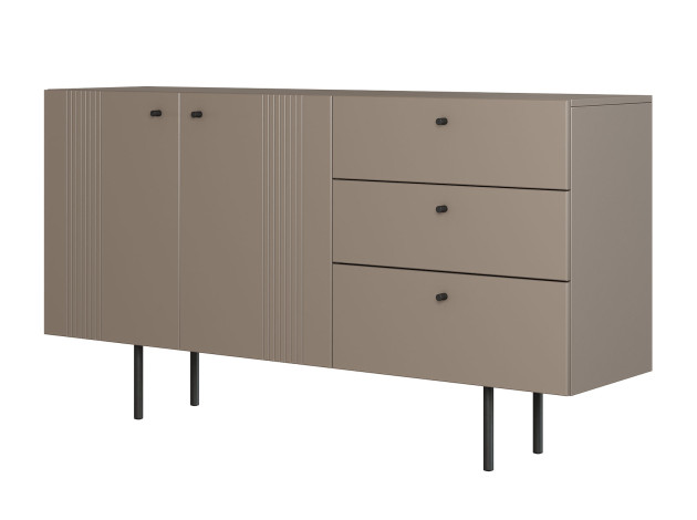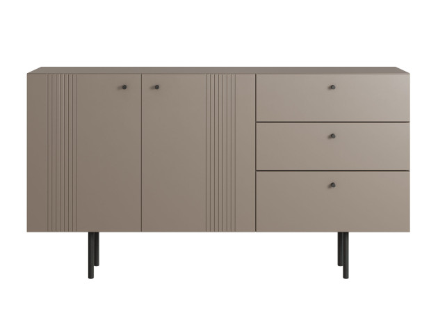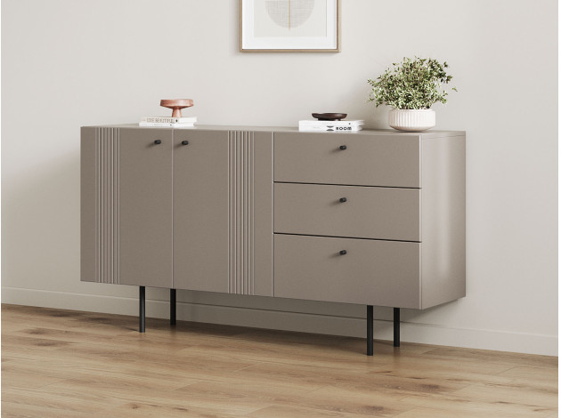 Комод Каприс с дверцами и ящиками — практичная модель для размещения всех необходимых вещей. В выдвижных ящиках удобно хранить одежду, белье и аксессуары. Распашное отделение подходит для более крупных предметов. Фасады украшены изящной фрезеровкой, а лаконичная фурнитура не отвлекает от самой мебели.