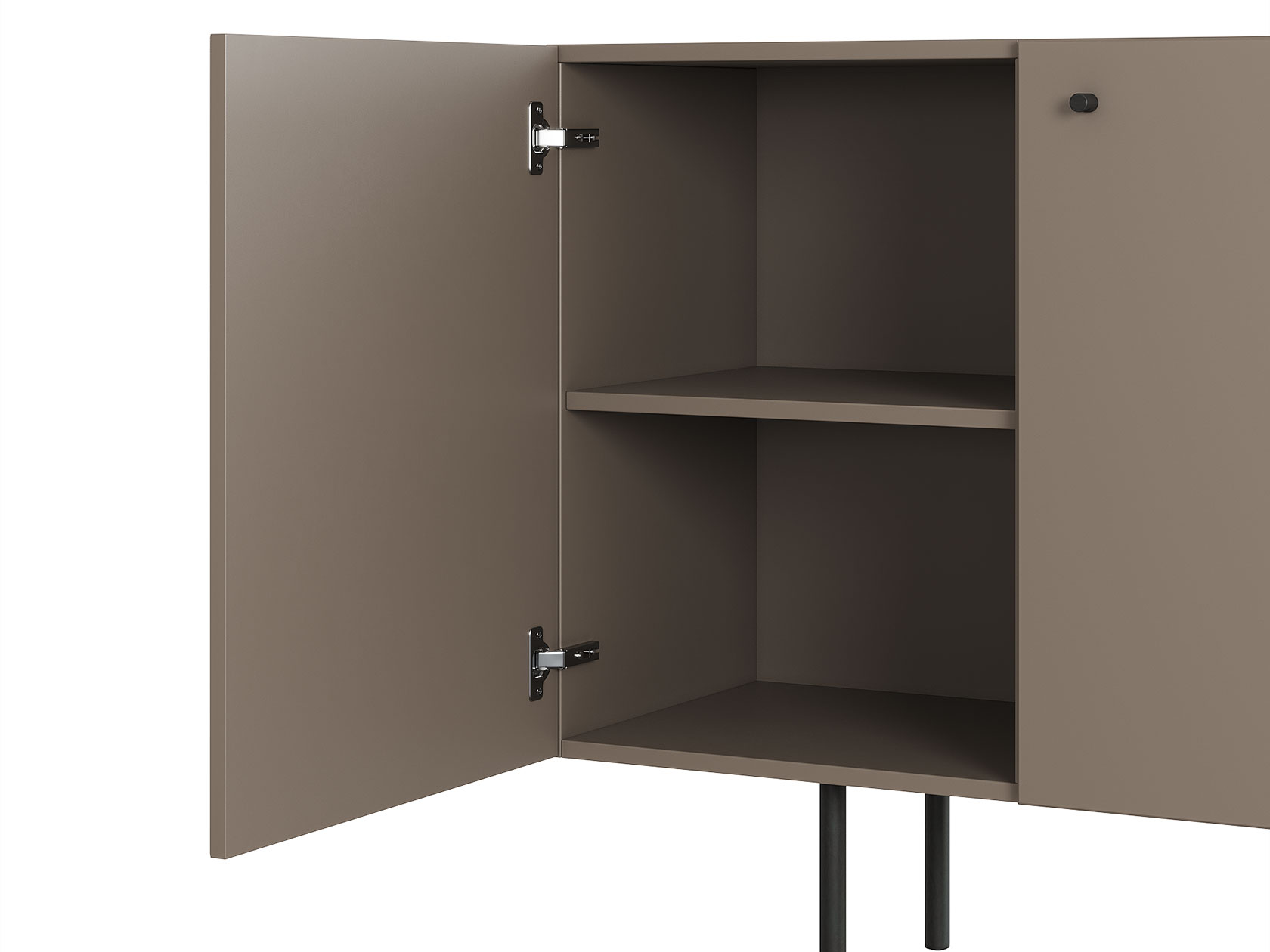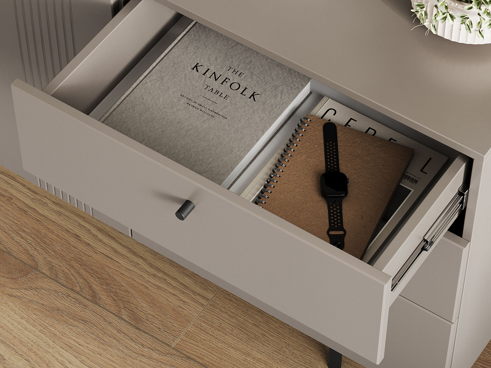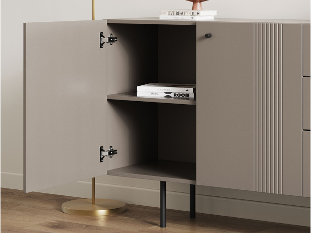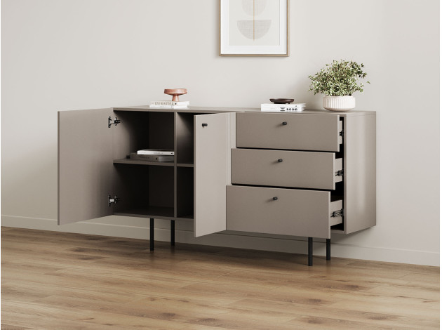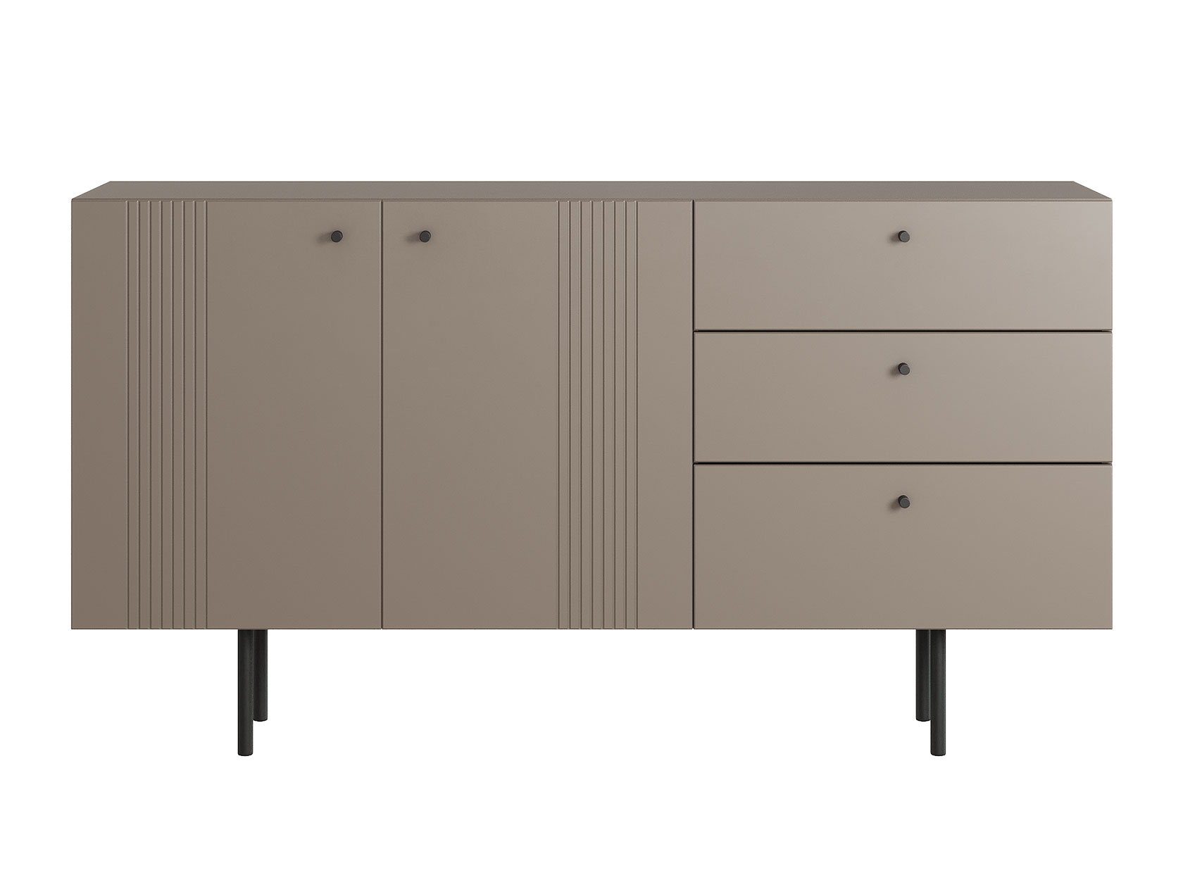 Комод Каприс с дверцами и ящиками — практичная модель для размещения всех необходимых вещей. В выдвижных ящиках удобно хранить одежду, белье и аксессуары. Распашное отделение подходит для более крупных предметов. Фасады украшены изящной фрезеровкой, а лаконичная фурнитура не отвлекает от самой мебели.