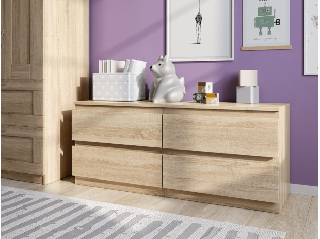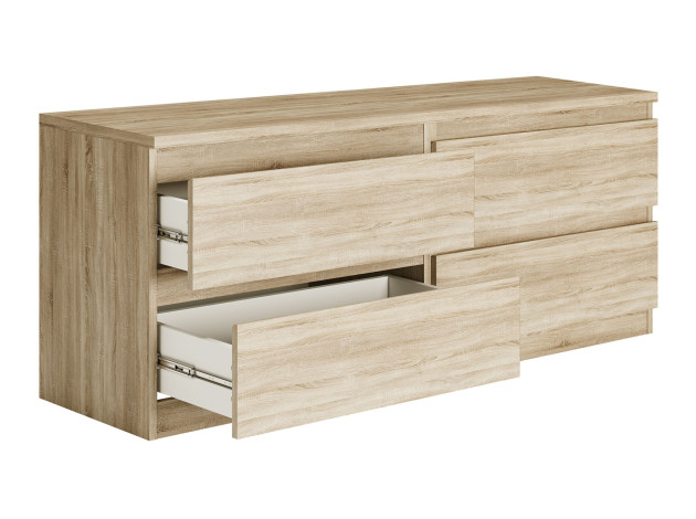 Комод Кастор — вместительный элемент, который подойдет для любой комнаты. Минималистичный дизайн и симметричные линии позволяют с легкостью комбинировать модель с другой мебелью в современном стиле. Ящики открываются за скошенный край фасада, позволяя быстро рассмотреть содержимое и найти нужную вещь.