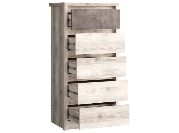 Узкий комод Джаз с пятью ящиками отлично подойдёт для размещения в гостиной, прихожей или спальне. Стильный дизайн прекрасно украсит современный интерьер.