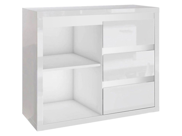 Небольшой белоснежный комод Норд отлично подойдет для малогабаритного помещения. Благодаря сдержанному дизайну модель идеально впишется в обстановку любой комнаты. Система хранения представлена тремя выдвижными ящиками и двумя нишами за распашной дверцей. На поверхности можно разместить различные мелочи.