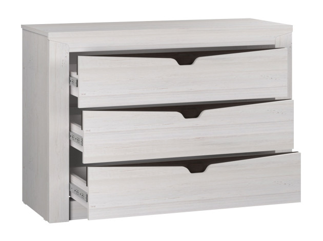 Комод Гарда идеально впишется в лофт-пространство современной квартиры-студии и создаст уют и комфорт. Конструкцией предусмотрено три выдвижных ящика, в которых будет удобно хранить множество вещей: в спальне — белье и одежду, в гостиной — фотографии или журналы, в прихожей — аксессуары.
