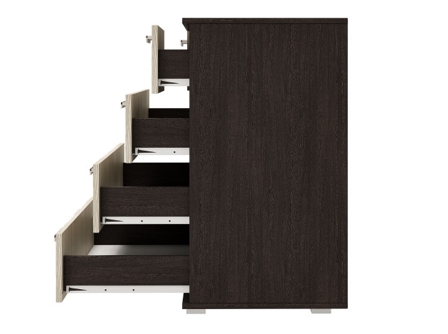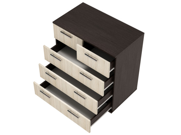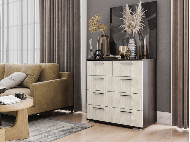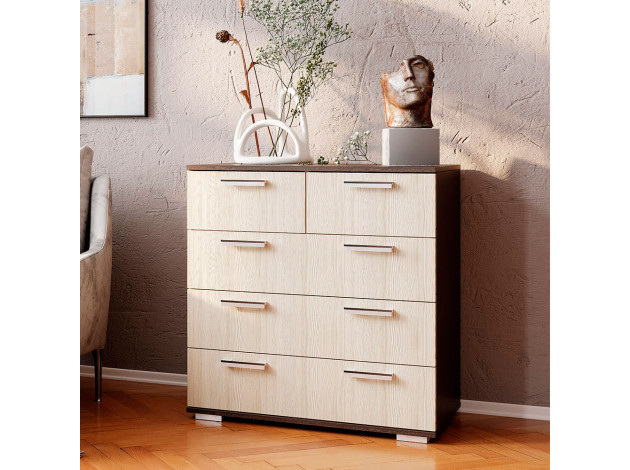 Комод Стандарт 5 — вместительная модель, которая поможет распределить вещи так, чтобы в комнате всегда был порядок. Выдвижные ящики подходят для хранения одежды, детских игрушек и самых разных предметов обихода. Дизайн с акцентом на простоту и лаконичность гармонично сочетается с разными интерьерными стилями.