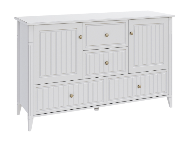 Комод Леона удачно впишется в интерьер. Разноплановые отделения обеспечивают место для равномерного распределения разных категорий вещей. Шариковые направляющие позволяют ящикам выдвигаться на полную глубину. Рамочные фасады дополнены фрезеровкой и лаконичными ручками, а невысокие опоры создают аристократичные акценты.
