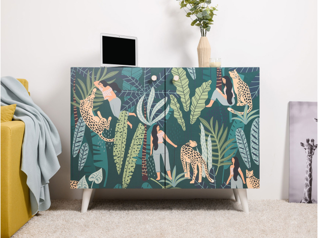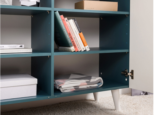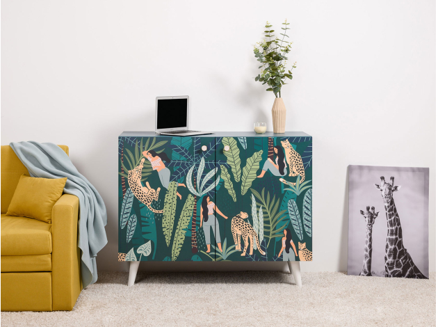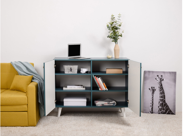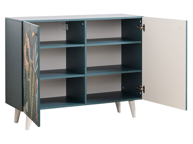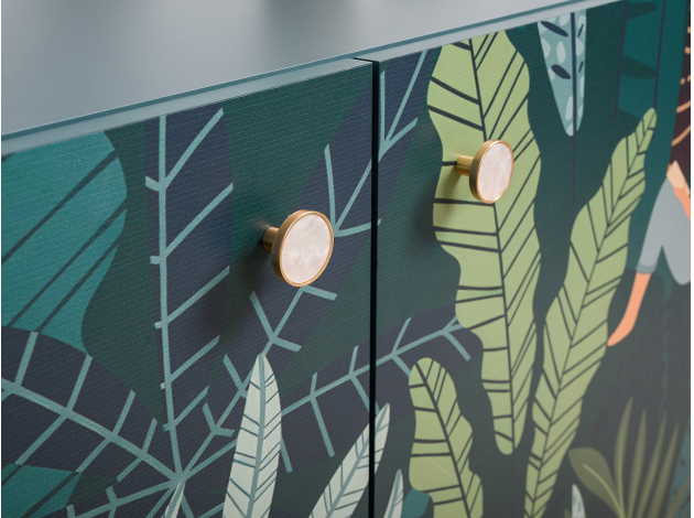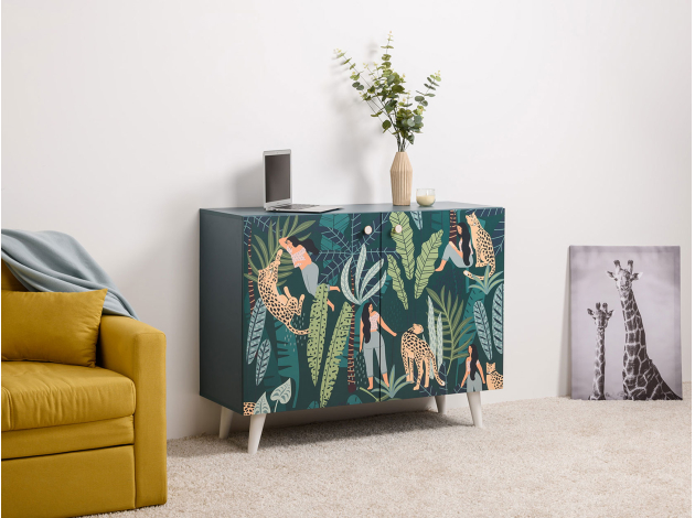 Комод Либера станет ярким украшением современного интерьера. За распашными дверцами находятся вместительные полки, где удобно хранить одежду, книги, постельное белье и аксессуары. Деревянные ножки в основании, расположенные под небольшим наклоном, позволяют легко проводить уборку. Фасады декорированы стильным принтом, который сделает комод эксклюзивным элементом меблировки.