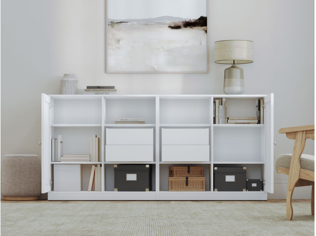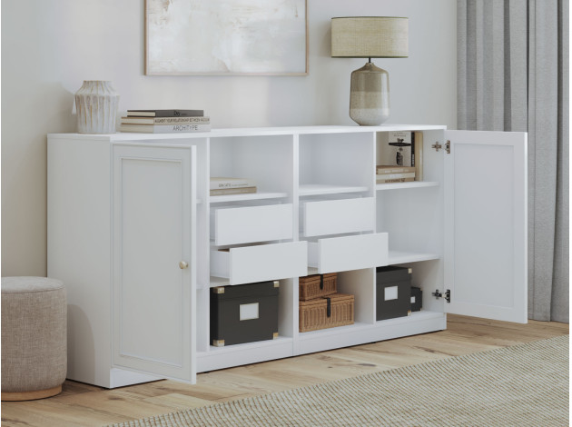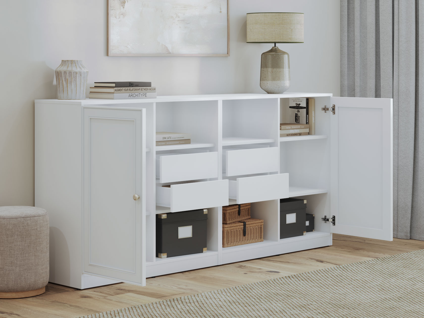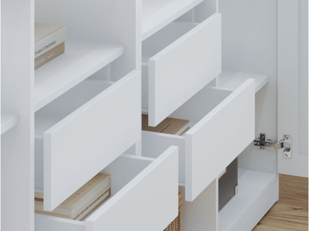 Набор комодов Люси Мини с ящиками поможет эстетично хранить домашнюю библиотеку, декор и личные вещи. Дверцы защищают содержимое от пыли и солнца, а открытые ниши создают ощущение свободного пространства, не загромождая интерьер. Рамочные фасады гармонично сочетаются с разными стилями меблировки.
