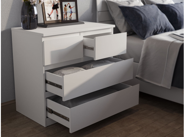 Комод Мальта поможет обустроить интерьер. Выдвижные ящики позволяют разместить любые категории вещей: от одежды до книг. На поверхности удобно расположить светильник, рамки с фотографиями и домашние растения.