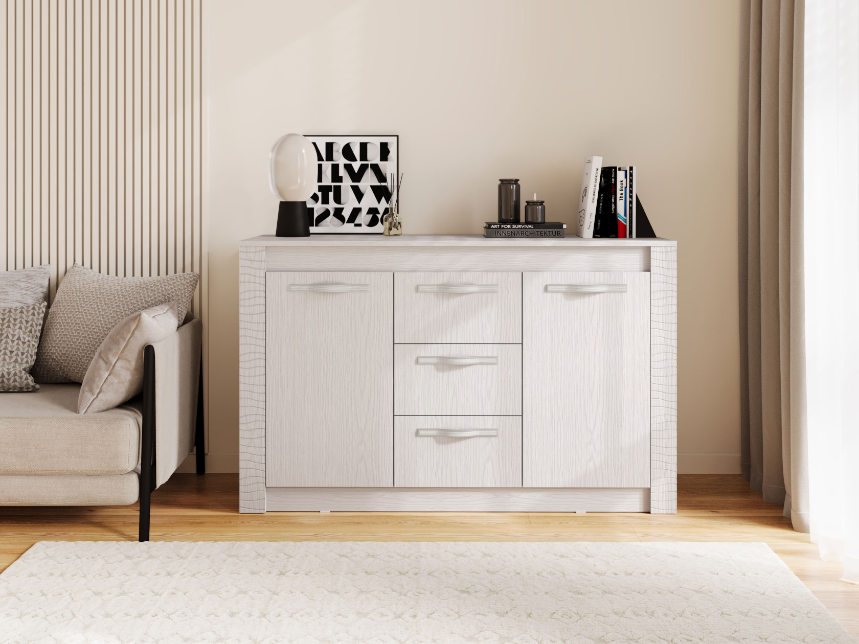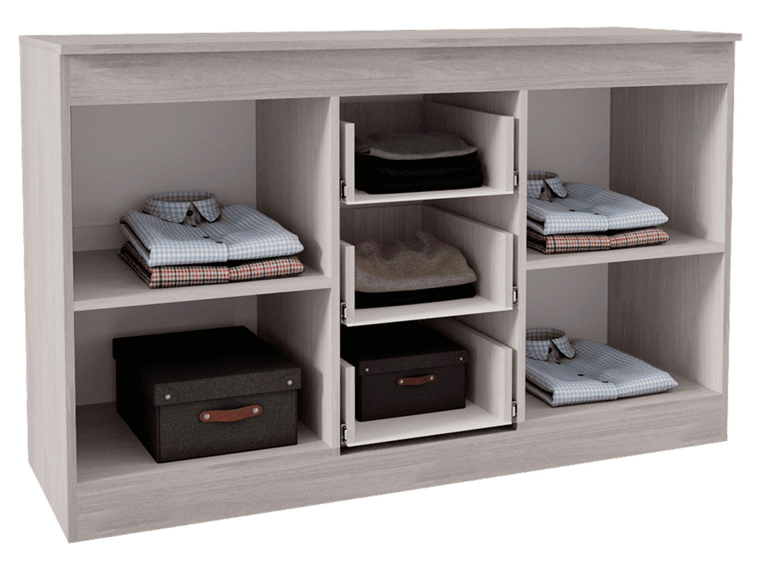 Комод Монако добавит функциональности любой комнате, сделав хранение вещей легким и компактным. Комбинированное наполнение в виде выдвижных ящиков и отделений с полками позволит аккуратно разместить джинсы, футболки, носки и прочие аксессуары.