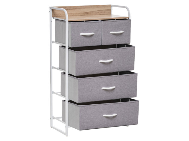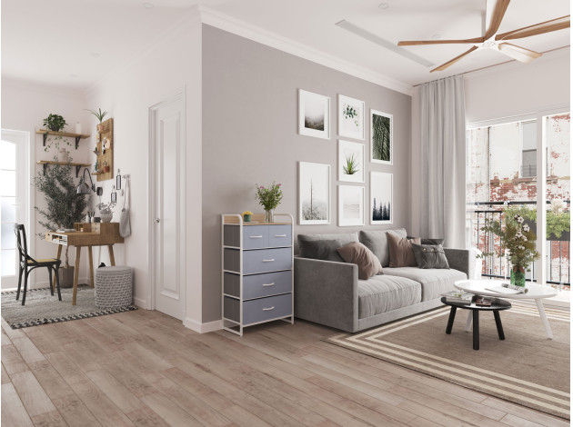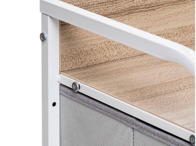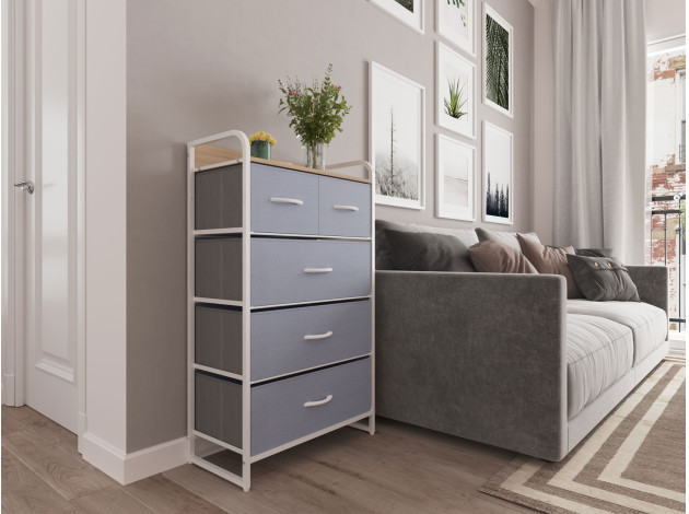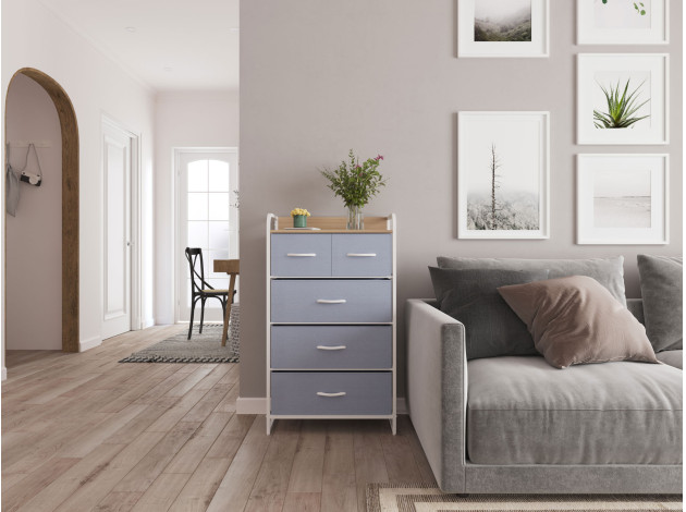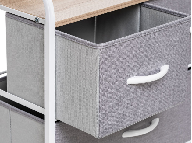 Комод Ноа станет практичным дополнением помещения и поможет в бережном хранении сложенной одежды, постельного белья и других вещей. Ящики выполнены из износостойкого, долговечного и водоотталкивающего материала. Опоры не царапают напольное покрытие, обладают антискользящими свойствами и регулируются по высоте. Для повышения устойчивости комод можно прикрепить к стене.