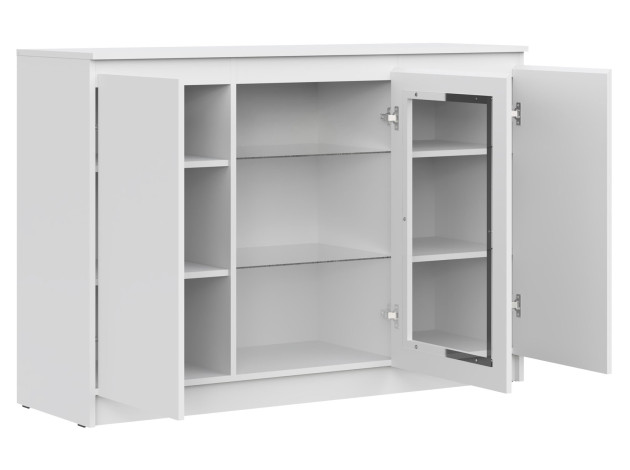 Комод-витрина Штерн станет практичным дополнением современной гостиной. Строгие линии и отсутствие декора делают модель универсальной для большинства интерьеров. Благодаря стеклянной вставке вместительный комод не выглядит громоздким и позволяет продемонстрировать стильный декор.