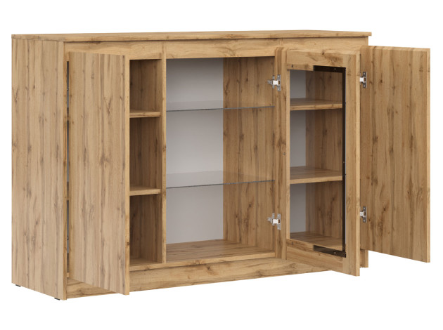 Комод-витрина Штерн станет практичным дополнением современной гостиной. Строгие линии и отсутствие декора делают модель универсальной для большинства интерьеров. Благодаря стеклянной вставке вместительный комод не выглядит громоздким и позволяет продемонстрировать стильный декор.
