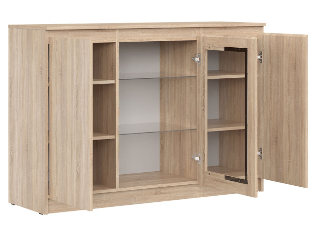 Комод-витрина Штерн станет практичным дополнением современной гостиной. Строгие линии и отсутствие декора делают модель универсальной для большинства интерьеров. Благодаря стеклянной вставке вместительный комод не выглядит громоздким и позволяет продемонстрировать стильный декор.