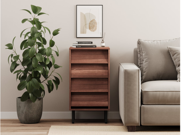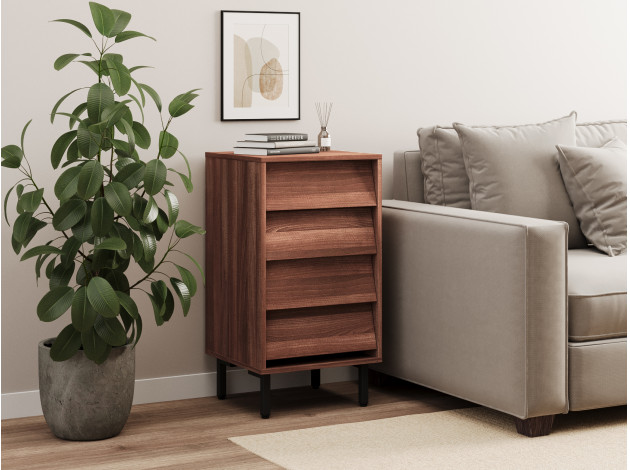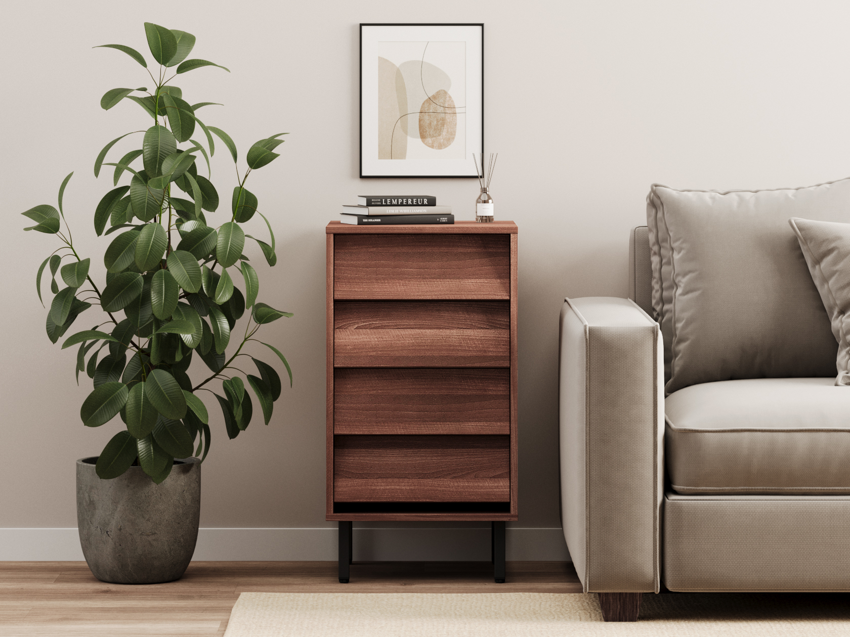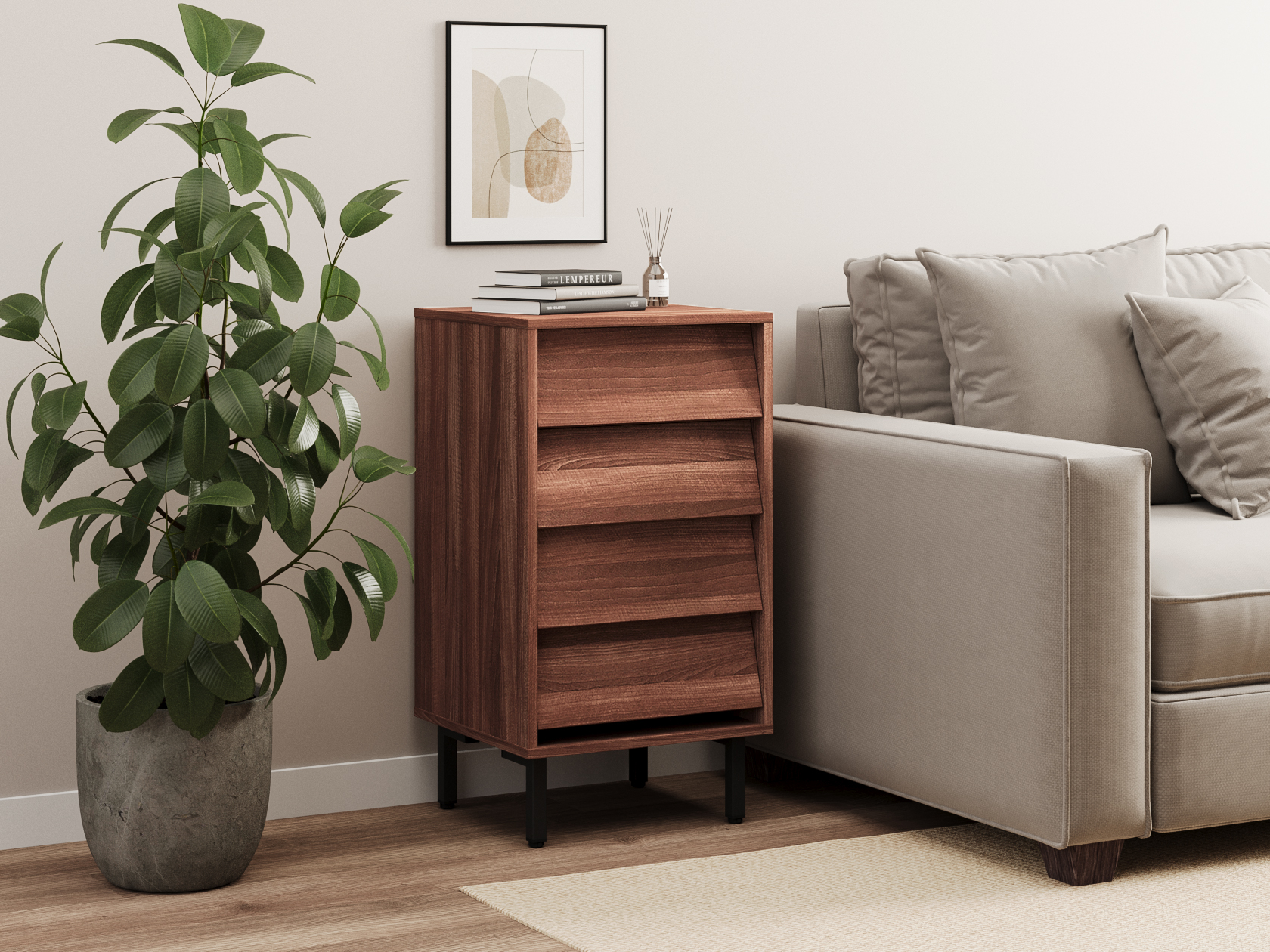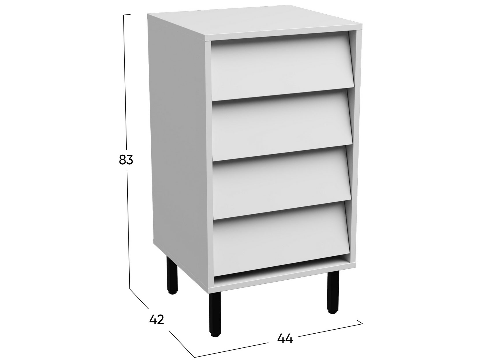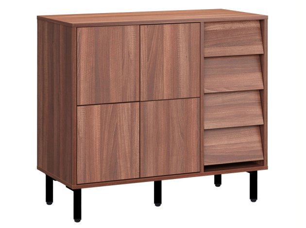 Комод Степ станет изюминкой интерьера и добавит обстановке функциональности и уюта. Благодаря компактным габаритам модель можно разместить в небольшой комнате. Внутри удобно хранить текстиль, аксессуары и важные мелочи. Фасады расположены под углом, что позволяет легко открывать ящики.