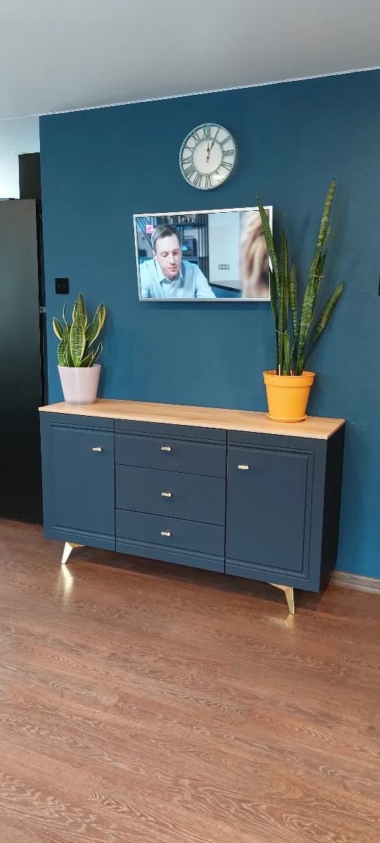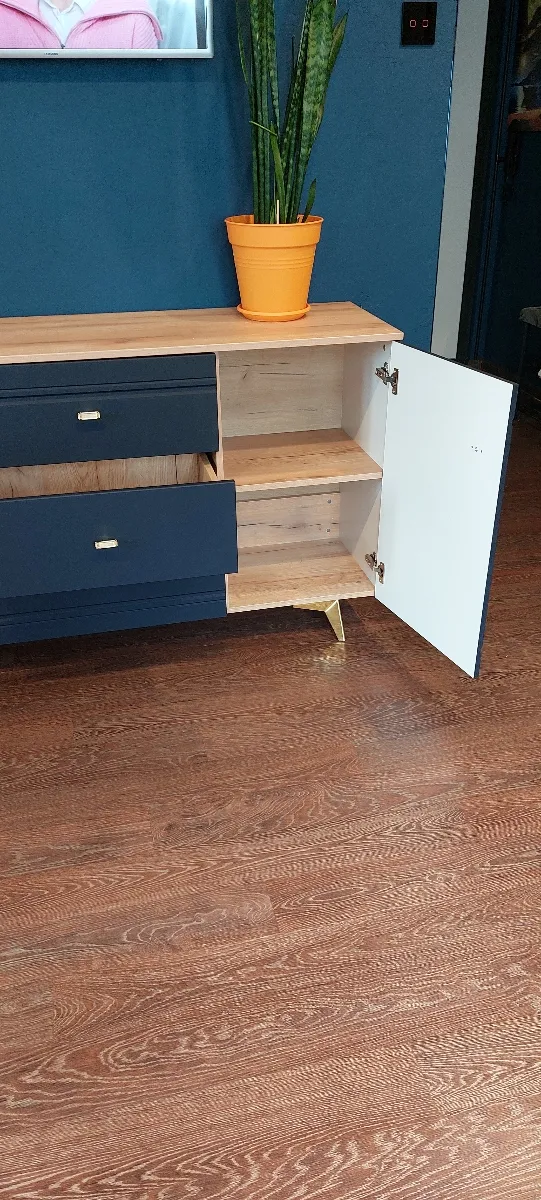 Очень красивый комод! Качество мебели невероятное. Все детали подогнаны идеально, вся схема сборки понятна. Лишних деталей как и недостающих нет. Фасады комода -синего глубокого бархатного цвета,очень приятные на ощупь. Спасибо производителю за мебель потрясающего качества!