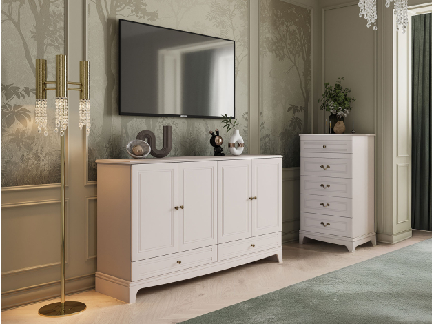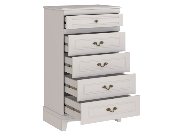 Комод Вилора 5 ящиков расширит возможности для хранения и станет стильным акцентом интерьера. Высокая модель идеально подойдет для небольшого пространства. Фасады украшены элегантными рамками и изящными ручками, которые подчеркивают классический дизайн мебели. Выдвижные ящики открываются на полную глубину, обеспечивая быстрый доступ к необходимым вещам.