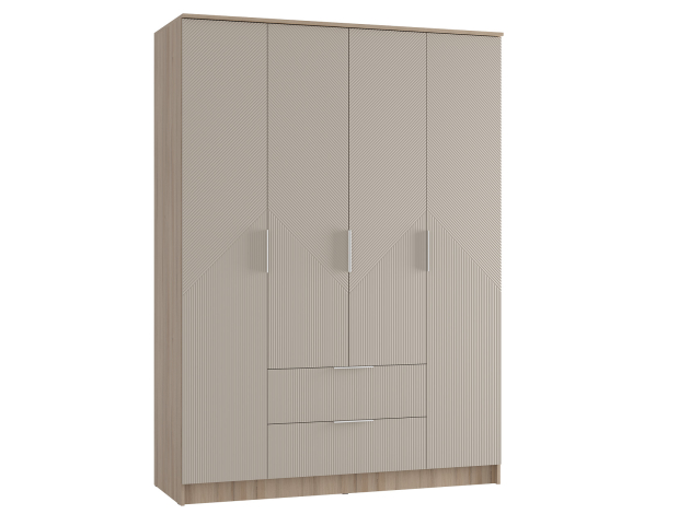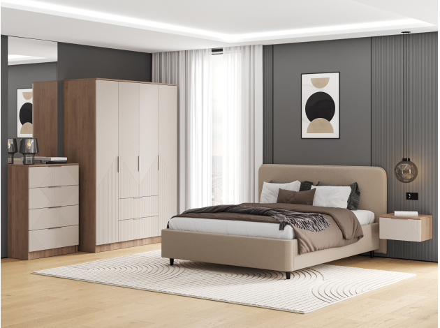 Спальный гарнитур Эмилия Оптима — готовое решение для уютной и расслабляющей атмосферы в современной комнате. Кровать с высоким мягким изголовьем создаст комфортные условия для чтения и отдыха. Разнообразие зон для хранения позволяет удобно разместить одежду, белье и личные вещи, легко поддерживая порядок. Фактурные фасады с геометрическим узором добавляют обстановке уникальность и особый шарм.
