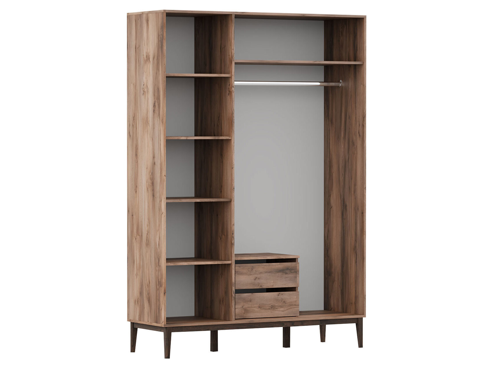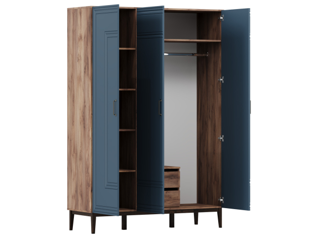 Дизайн спального гарнитура Эвора Макси привлекает внимание утонченными деталями и уютными текстурами. Матовые фасады с фрезеровкой дополнены изящными ручками в оттенке бронзы. Такое решение смотрится очень элегантно и гармонично. Благодаря разнообразию мест для хранения легко поддерживать порядок в вещах. Высокие акцентные ножки визуально облегчают мебель и упрощают уборку комнаты.