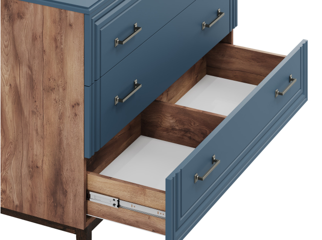 Преимущество данной коллекции — крашеные МДФ-фасады, покрытые матовым лаком. Они отличаются прочностью, экологичностью и уникальным внешним видом благодаря глубокому проникновению краски в структуру плиты. Матовая текстура без «пальчикового» эффекта придает мебели особую эстетику, а также обеспечивает легкий уход и долговечность.