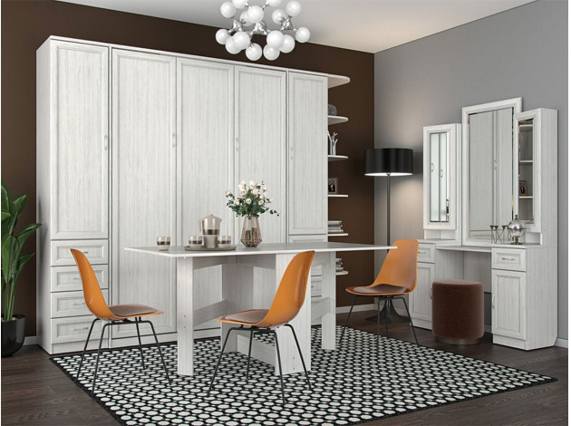 Спальный гарнитур Мерлен — сочетание всего необходимого для организации удобной обстановки и стильного дизайна. Кровать легко опускается и поднимается, что позволит практично обустроить спальню или гостиную.