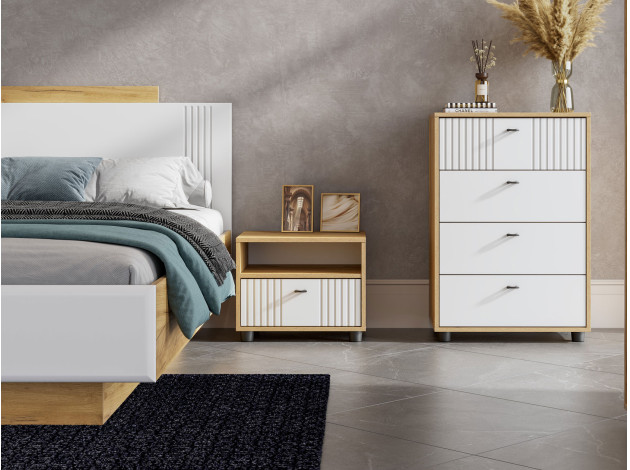 Спальный гарнитур Милан — простой способ оформить светлый и уютный интерьер с запоминающимися деталями. Тонкие вертикальные линии на матовых фасадах придают мебели элегантный вид. Она отличается безупречной эстетикой, функциональностью и удобством.