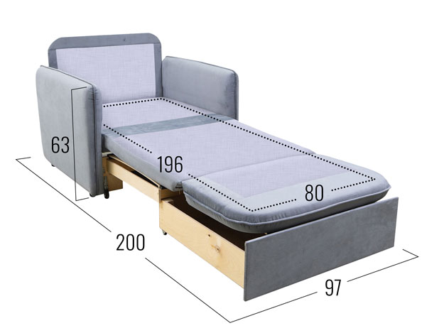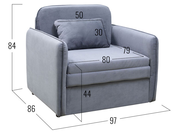 Кресло-кровать Айден Светло-серый, велюр