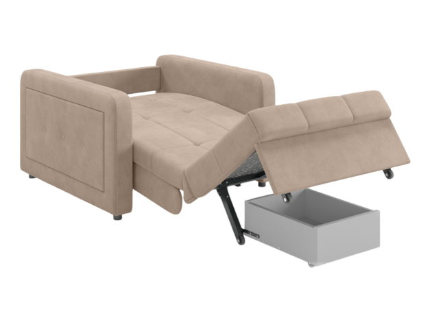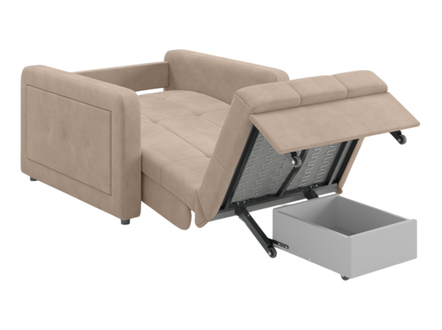 Кресло-кровать Реген подходит как для отдыха, так и для сна. Спинка обита основной тканью, поэтому модель можно расположить в любой части комнаты, а не только вдоль стены. Надежный раскладной механизм легко превращает кресло в спальное место. Металлокаркас обеспечивает прочность и устойчивость к нагрузкам, а высокий матрас — комфорт, сравнимый с полноценной кроватью.