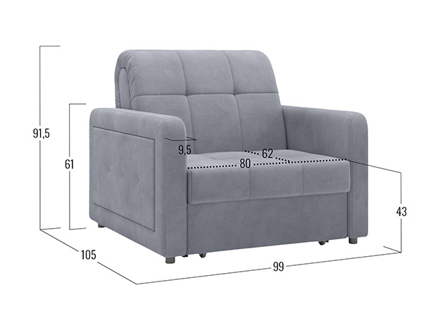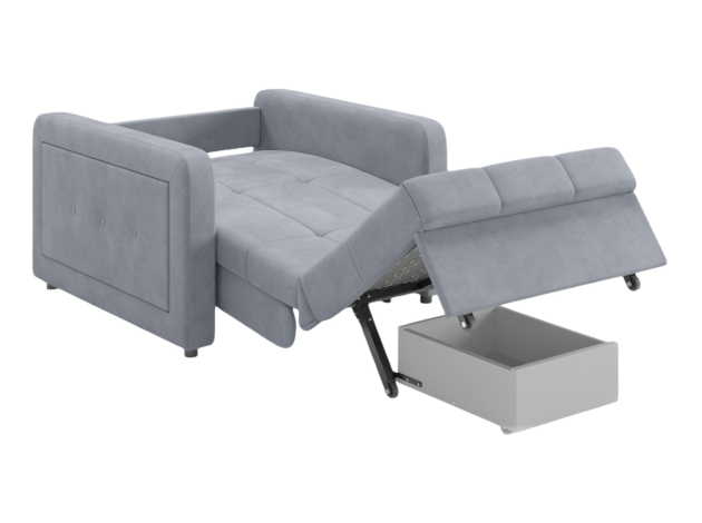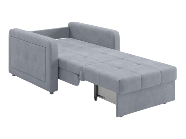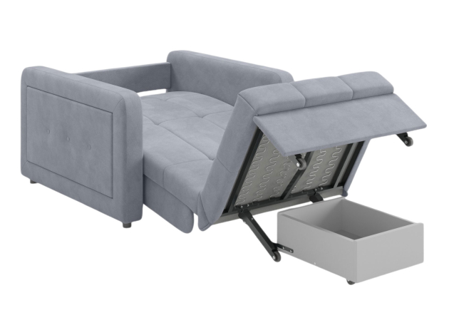 Кресло-кровать Реген подходит как для отдыха, так и для сна. Спинка обита основной тканью, поэтому модель можно расположить в любой части комнаты, а не только вдоль стены. Надежный раскладной механизм легко превращает кресло в спальное место. Металлокаркас обеспечивает прочность и устойчивость к нагрузкам, а высокий матрас — комфорт, сравнимый с полноценной кроватью.