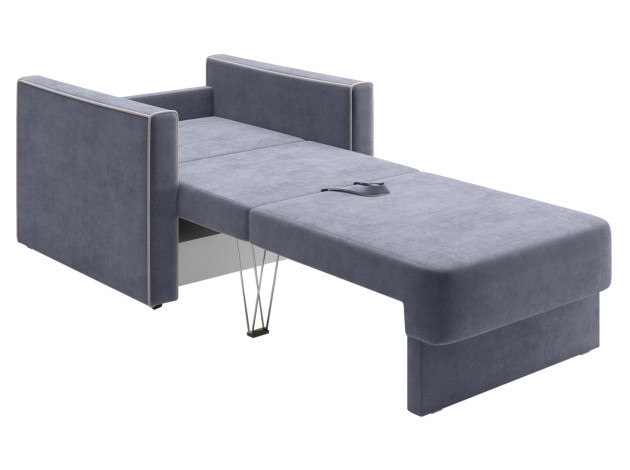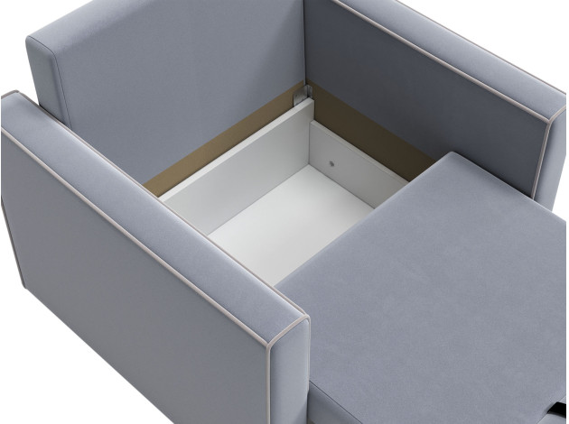 Кресло-кровать Лагос — практичная модель для современного интерьера. Со всех сторон используется основная ткань, поэтому кресло можно установить в любой части комнаты. Однотонная обивка дополнена контрастным кантом, который эффектно подчеркивает лаконичные контуры. В кресле комфортно отдыхать благодаря мягкой приспинной подушке и широким подлокотникам, а при необходимости оно легко раскладывается, образуя ровное спальное место. Постельные принадлежности удобно держать в небольшом ящике для белья.