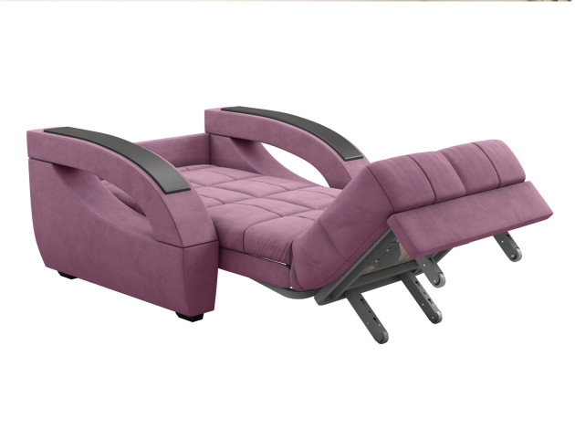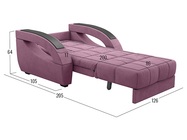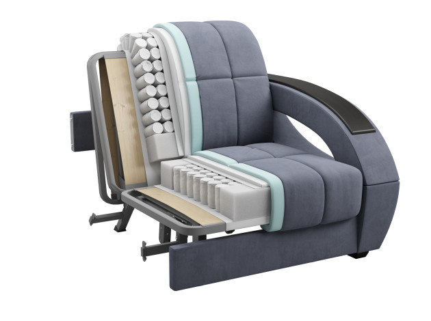 В разложенном виде получается ровное спальное место, при этом невысокая планка защищает от контакта со стеной. Шагающий механизм не портит напольное покрытие, поэтому кресло отлично подходит для ежедневного сна.