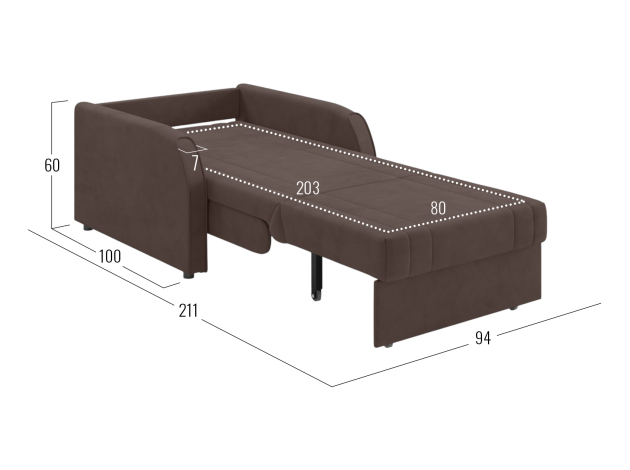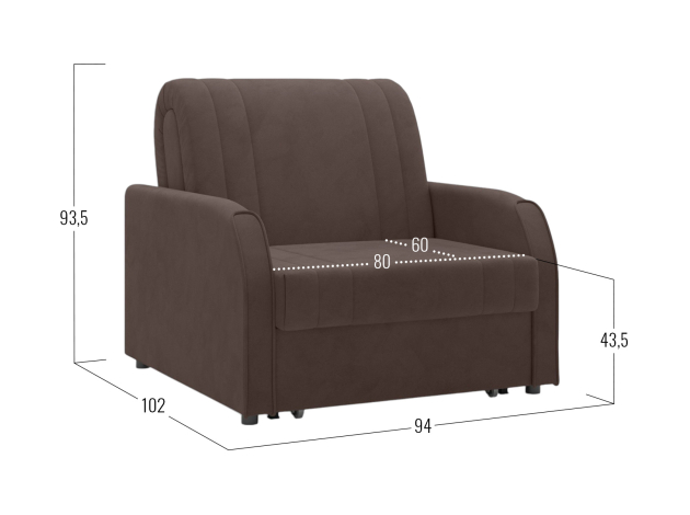 Кресло-кровать Сантос Коричневый, велюр Без ящика