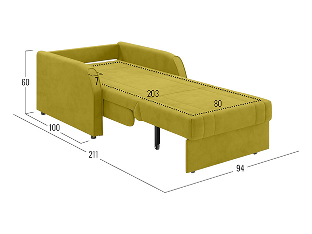 Кресло-кровать Сантос Горчичный, велюр С ящиком