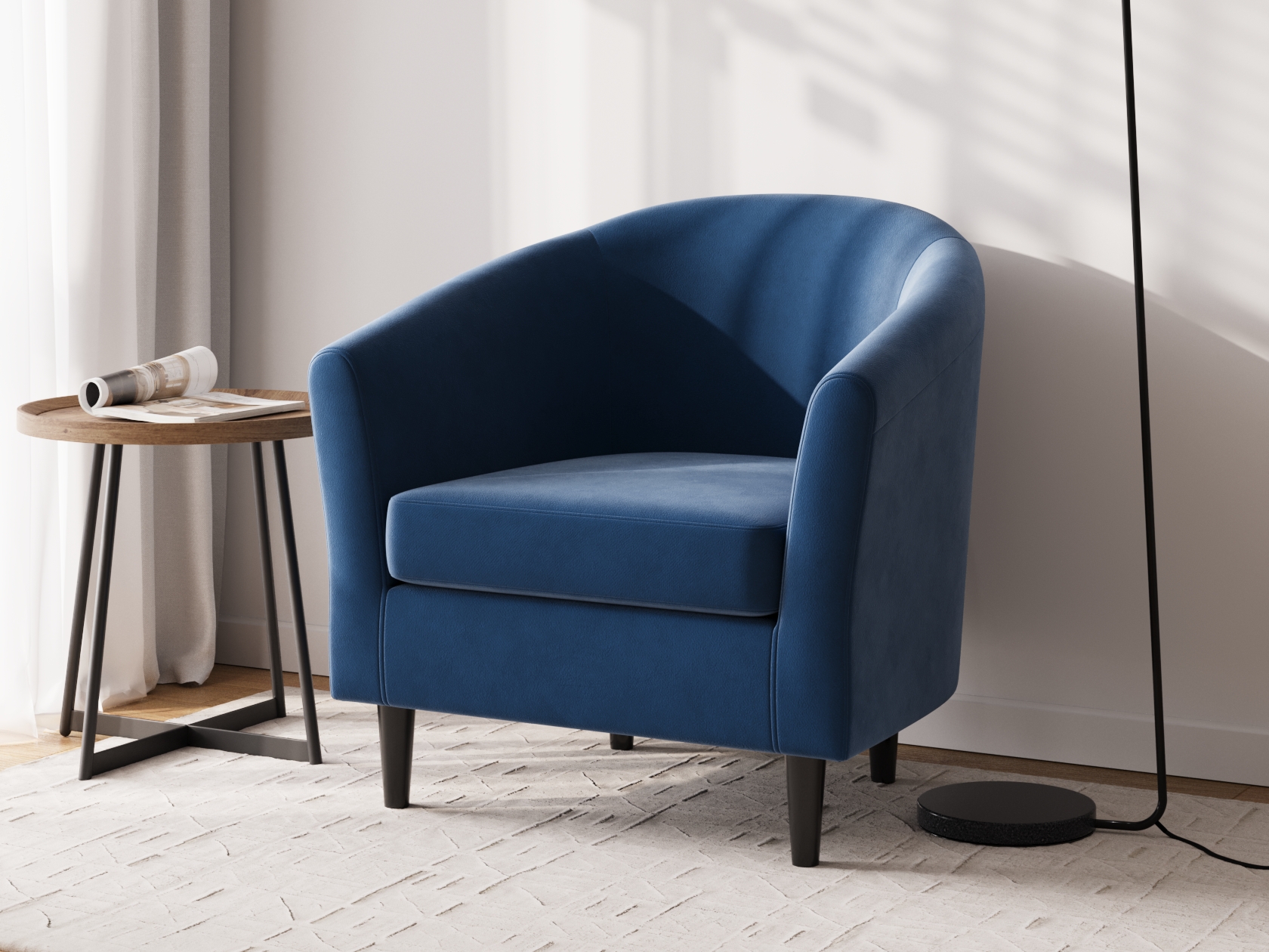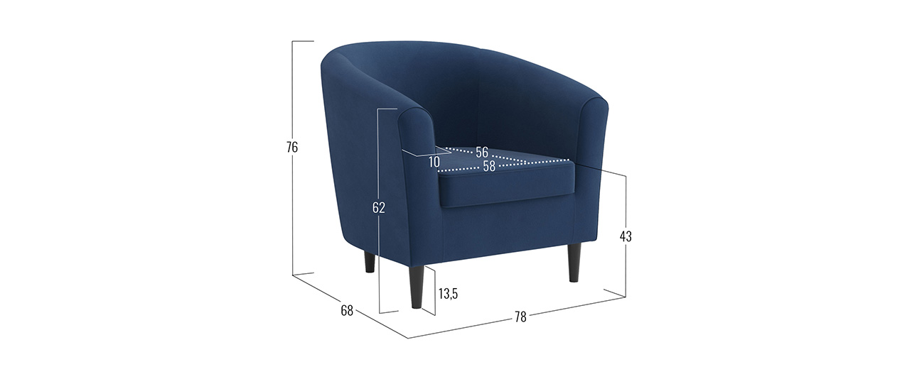 Плавные линии кресла Арни наполняют интерьер гармонией и уютом. Модель имеет компактные габариты, поэтому прекрасно подходит для небольших помещений. Благодаря высоким ножкам кресло не выглядит массивно. Его можно поставить в центре комнаты и использовать для зонирования пространства.