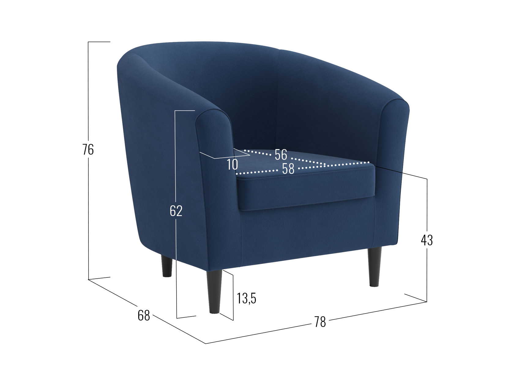 - Высота ножек: 13,5 см.