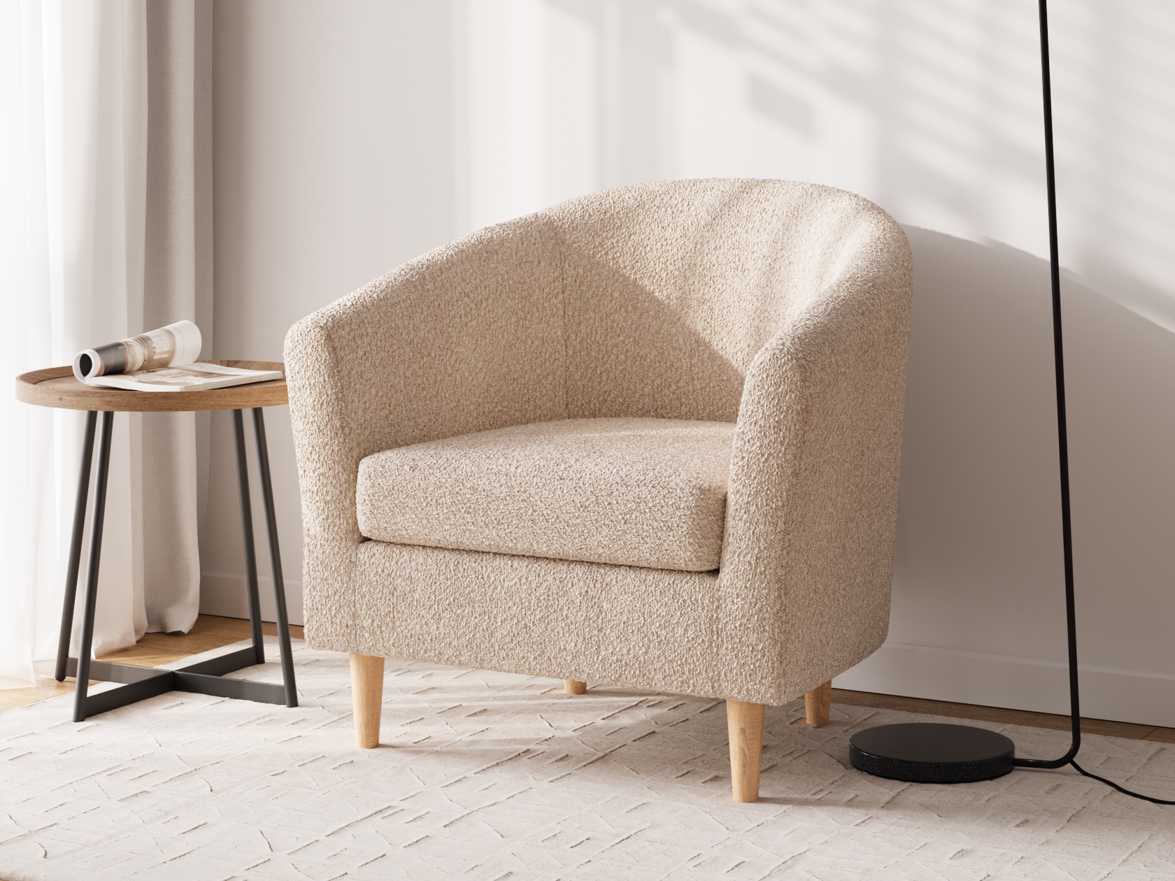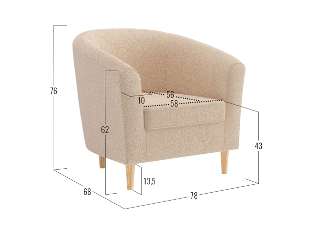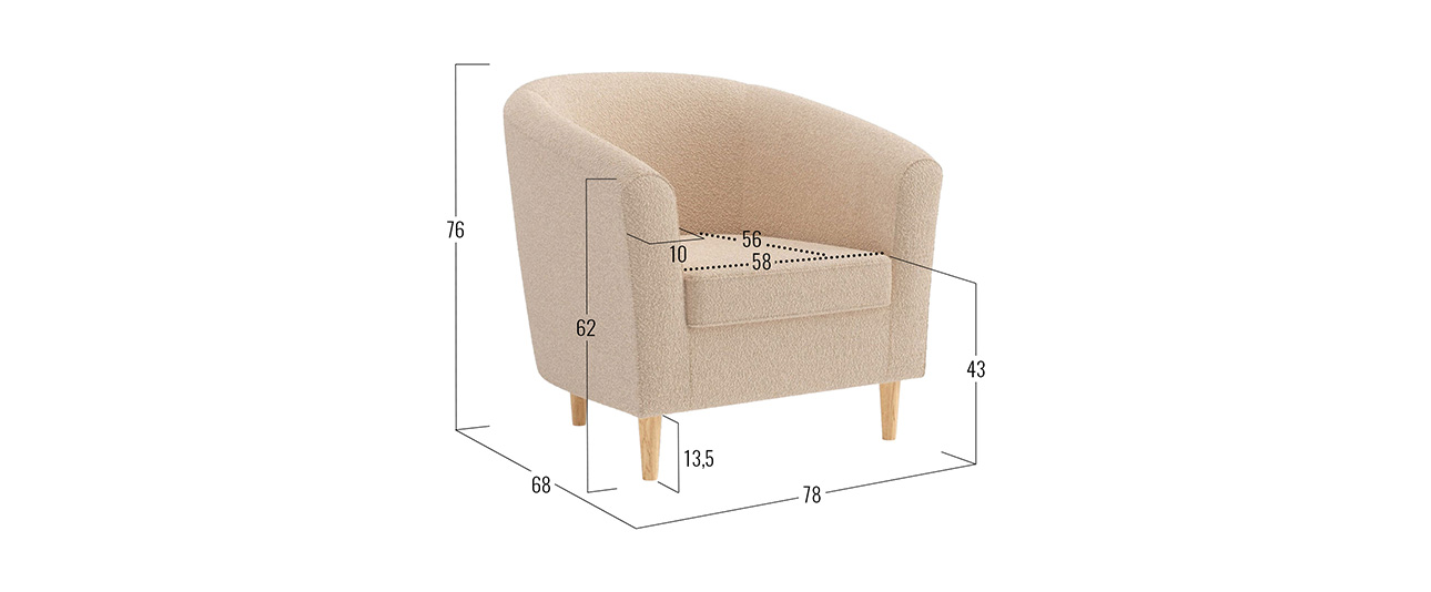 Плавные линии кресла Арни наполняют интерьер гармонией и уютом. Модель имеет компактные габариты, поэтому прекрасно подходит для небольших помещений. Благодаря высоким ножкам кресло не выглядит массивно. Его можно поставить в центре комнаты и использовать для зонирования пространства.