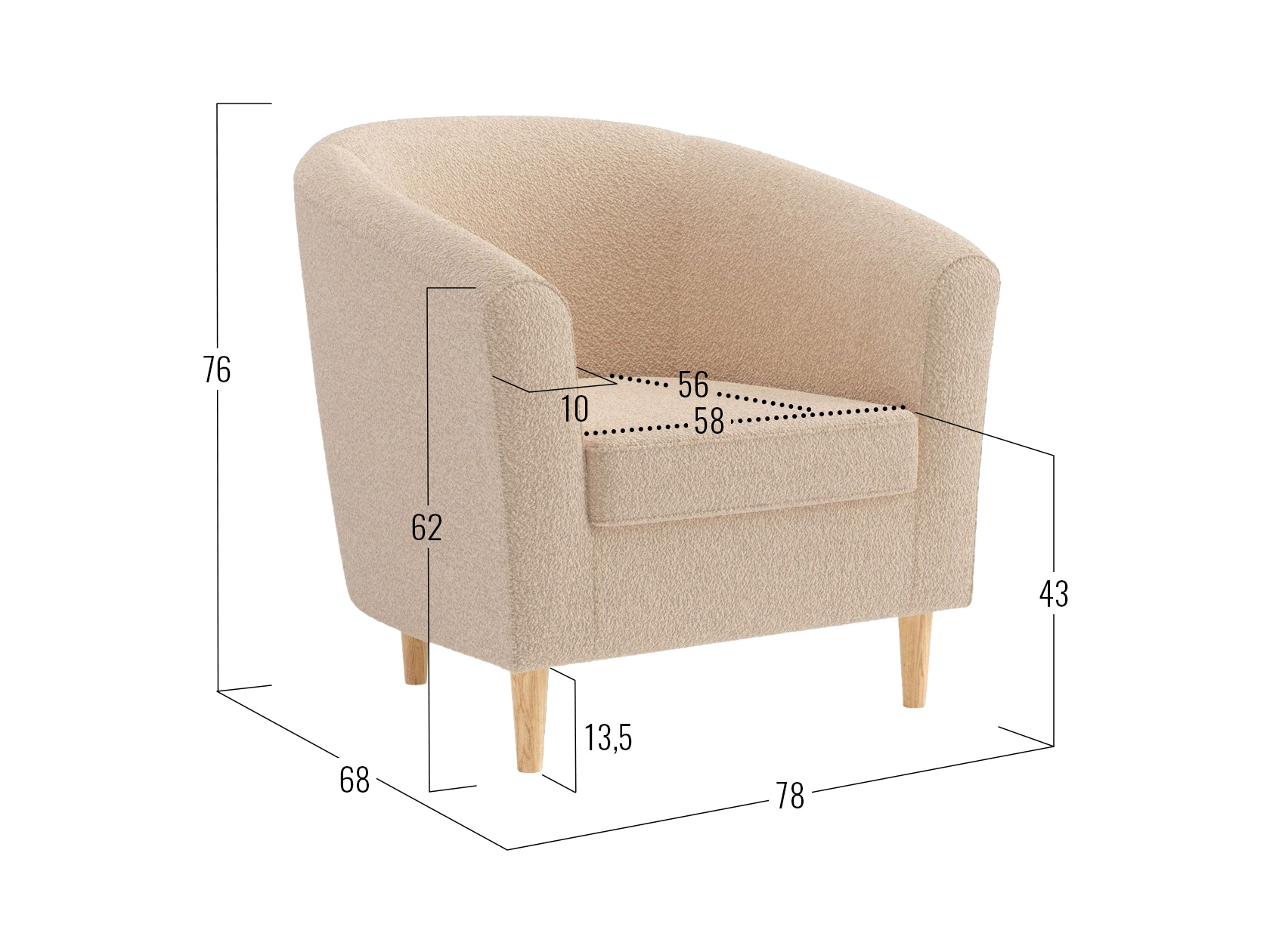 - Высота ножек: 13,5 см.