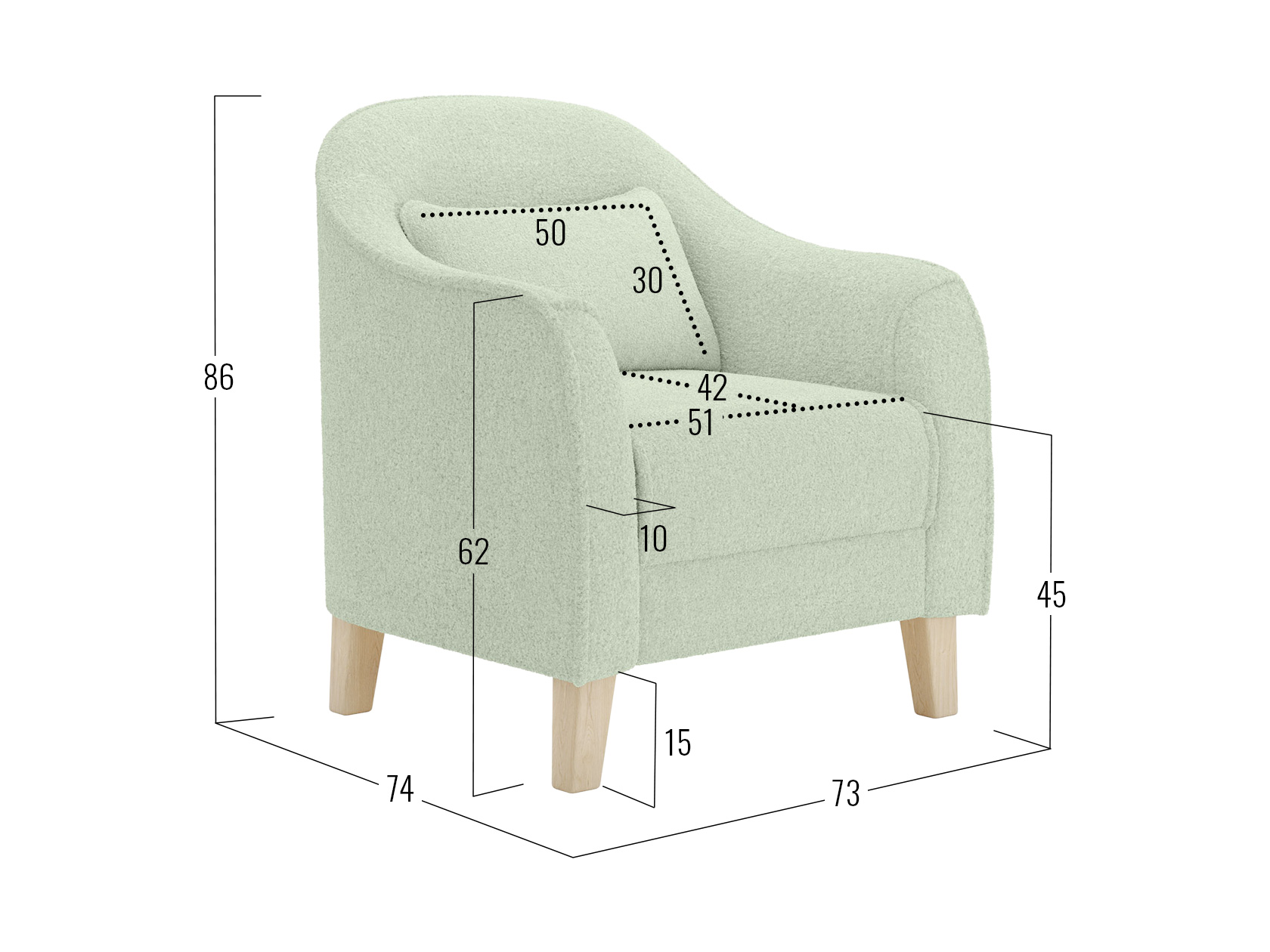 - Посадочное место без подушки (ШхГ): 51 х 57 см.