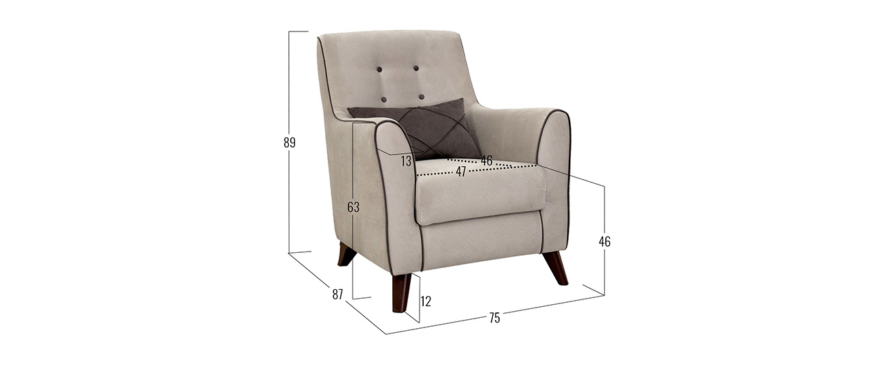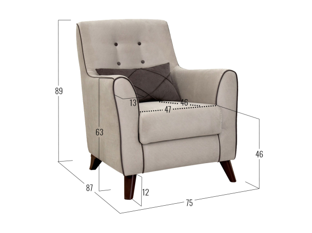 - Посадочное место без подушек (ШхГ): 47 х 57 см.