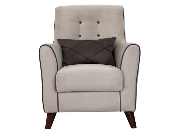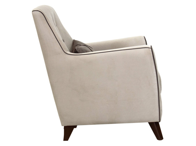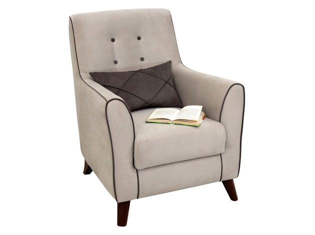 Очаровательное кресло Френсис станет вашим излюбленным местом для отдыха после трудного дня. Весь его внешний вид в ретро-стиле навевает уют и располагает к полноценному расслаблению. Спинка кресла имеет легкий наклон назад и соединяется с удобными подлокотниками для более комфортной посадки. Она декорирована имитацией стяжки с пуговицами. На сиденье расположена большая мягкая подушка.