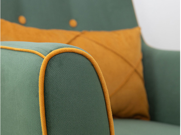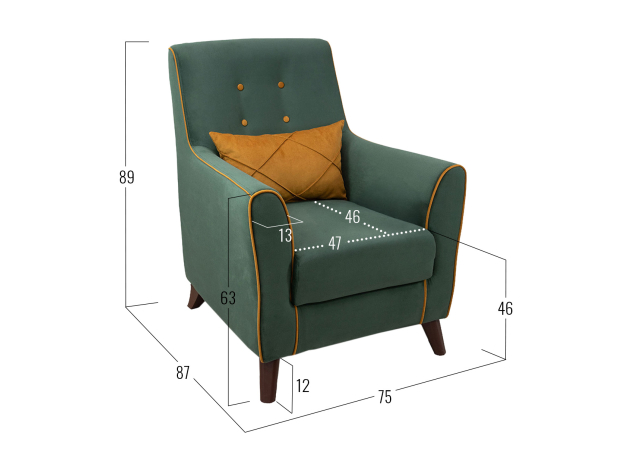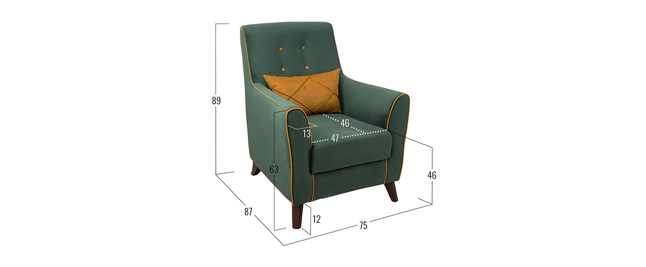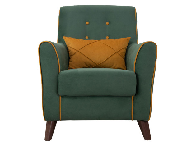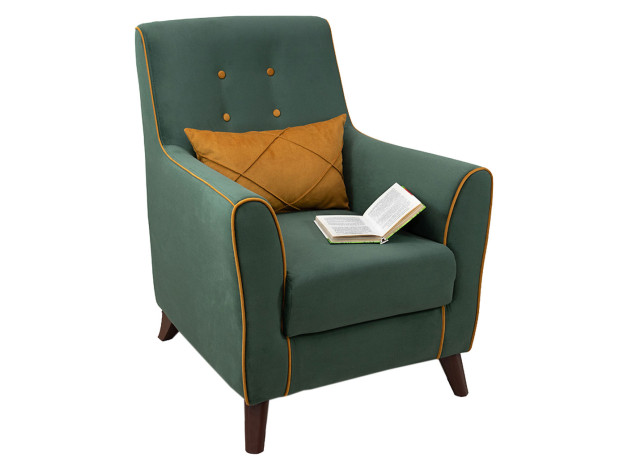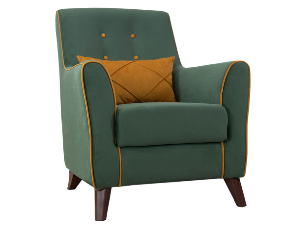 Очаровательное кресло Френсис станет вашим излюбленным местом для отдыха после трудного дня. Весь его внешний вид в ретро-стиле навевает уют и располагает к полноценному расслаблению. Спинка кресла имеет легкий наклон назад и соединяется с удобными подлокотниками для более комфортной посадки. Она декорирована имитацией стяжки с пуговицами. На сиденье расположена большая мягкая подушка.